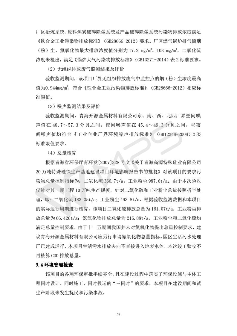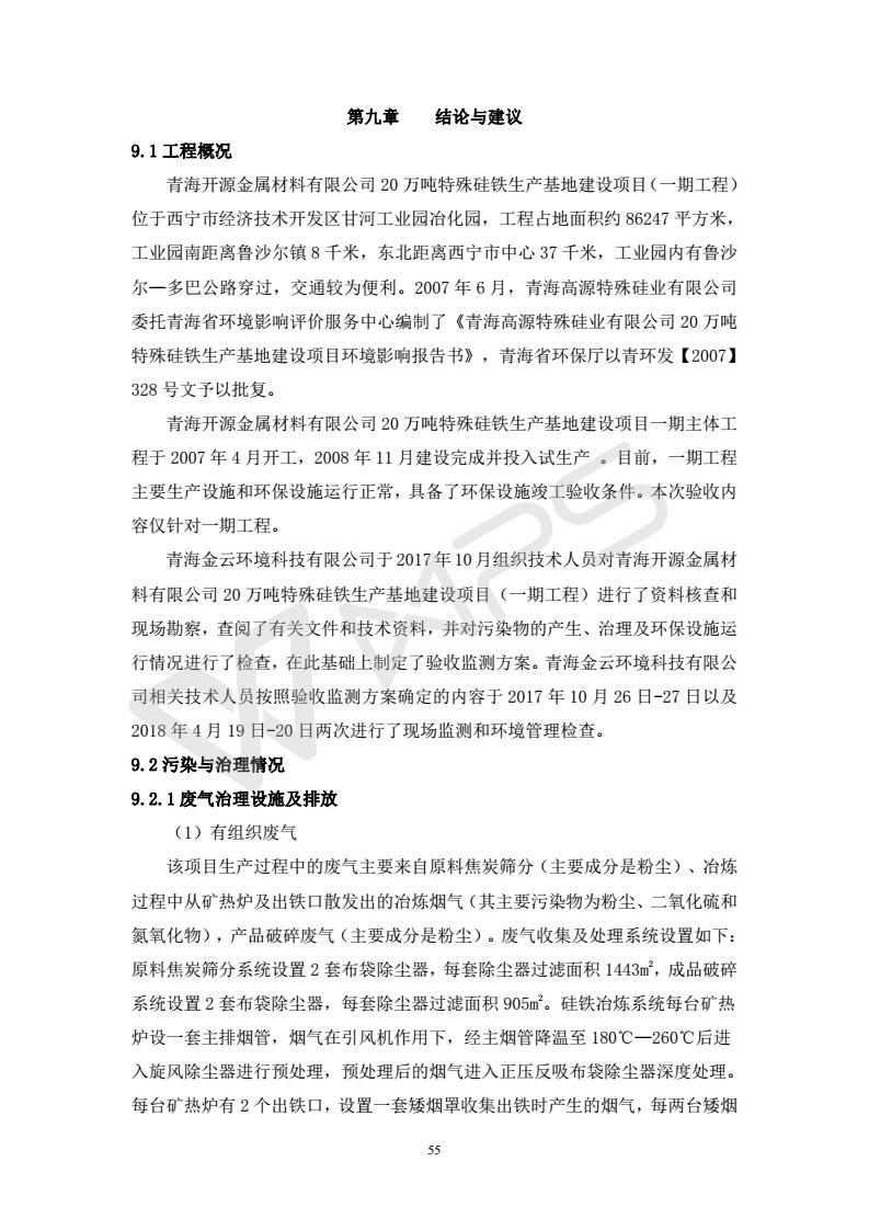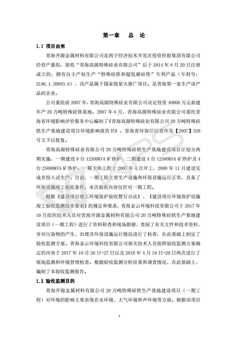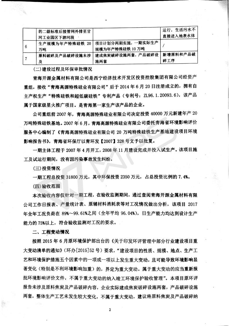 青海開源金屬材料有限公司20萬噸特殊硅鐵生產(chǎn)基地建設(shè)項目(一期工程)竣工環(huán)境保護驗收報告書會后修改20180521