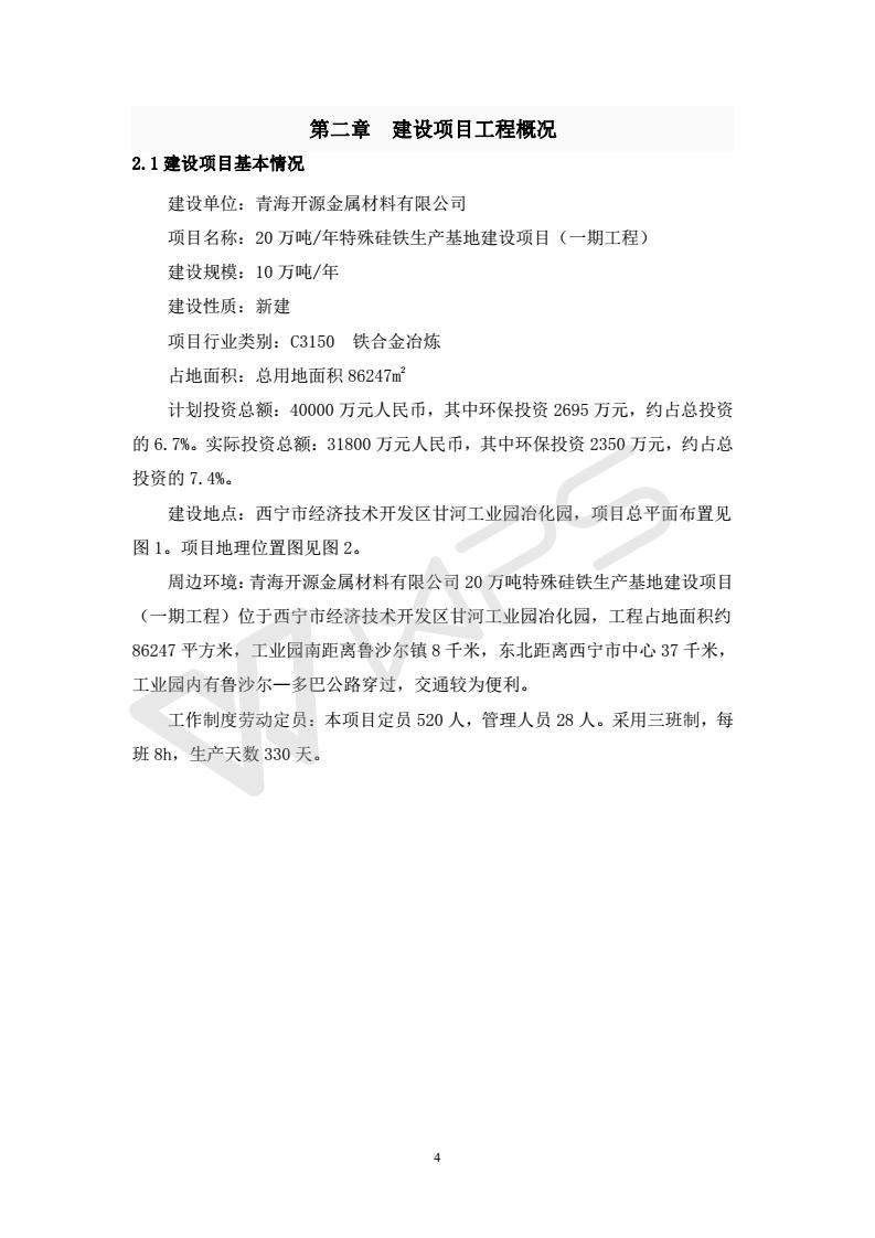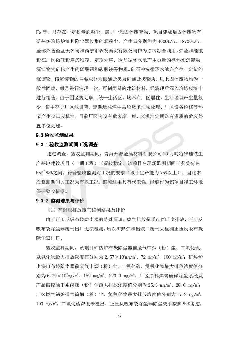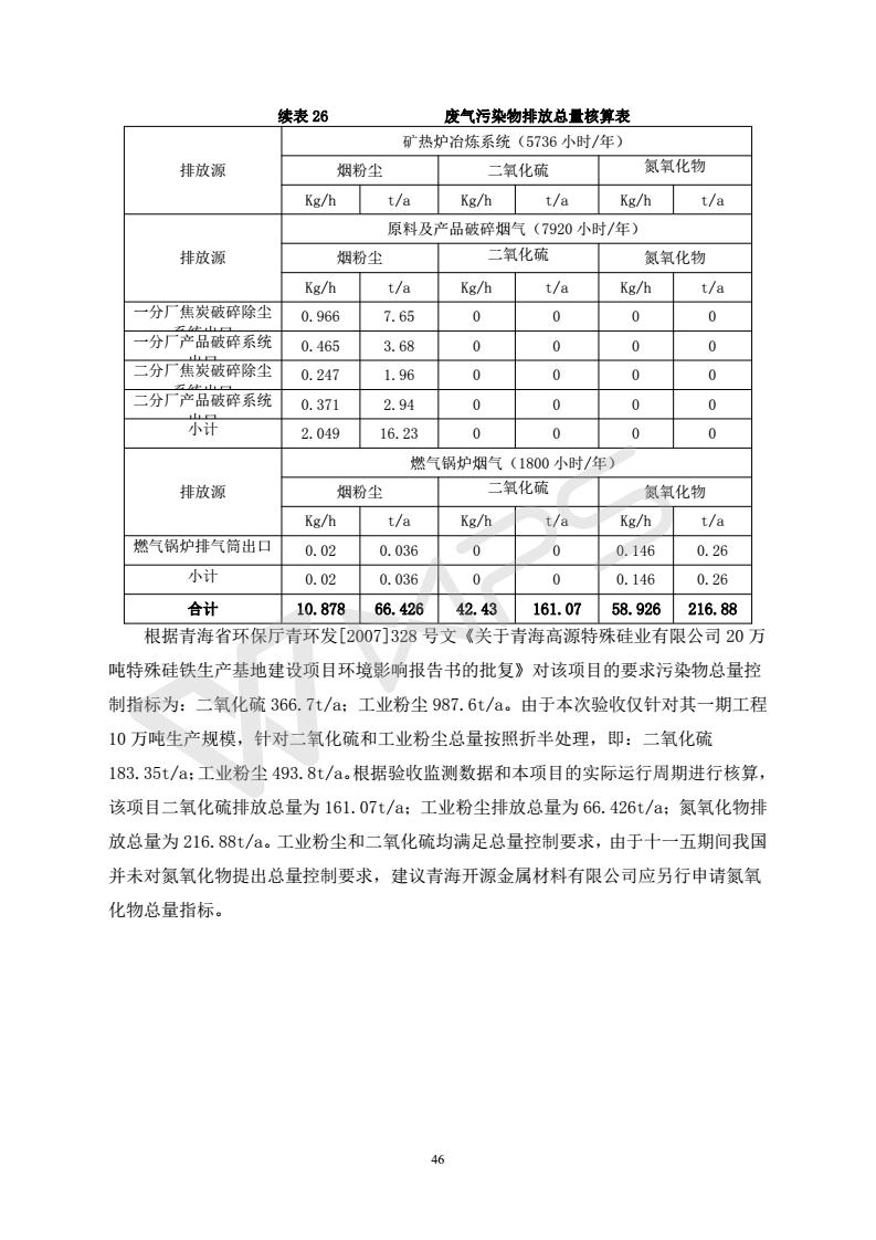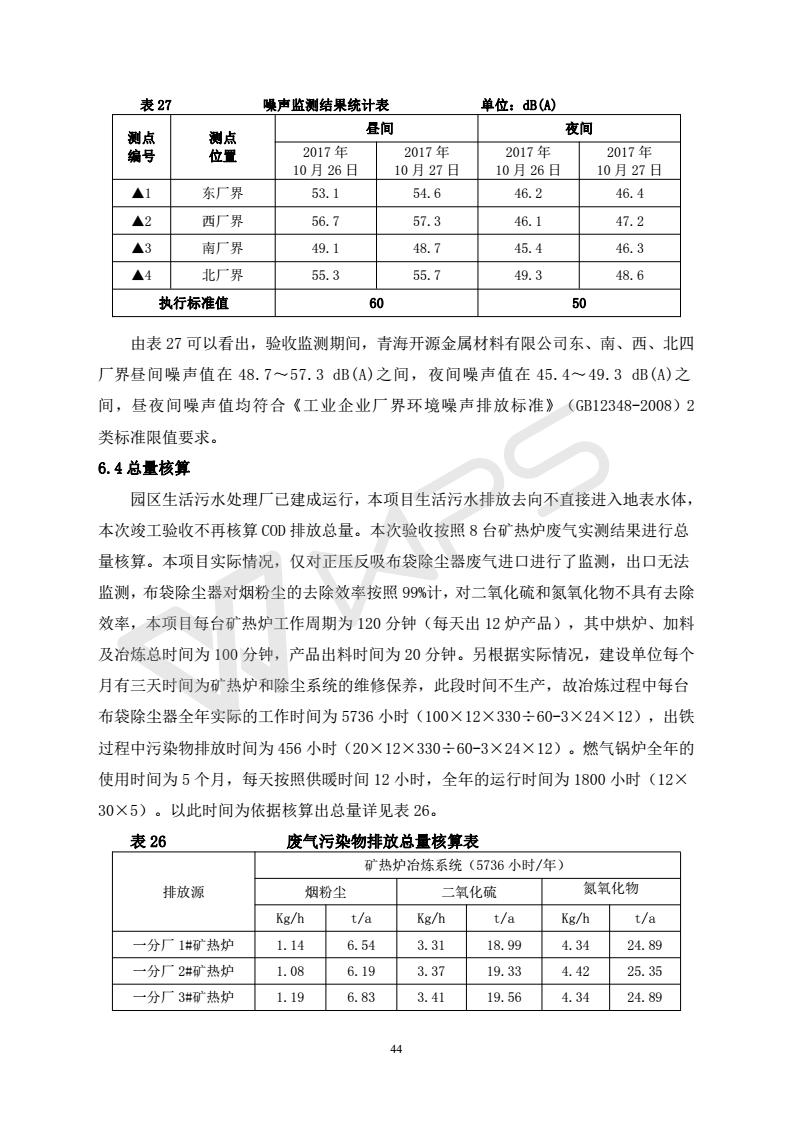 青海開源金屬材料有限公司20萬噸特殊硅鐵生產(chǎn)基地建設(shè)項目(一期工程)竣工環(huán)境保護驗收報告書會后修改20180521