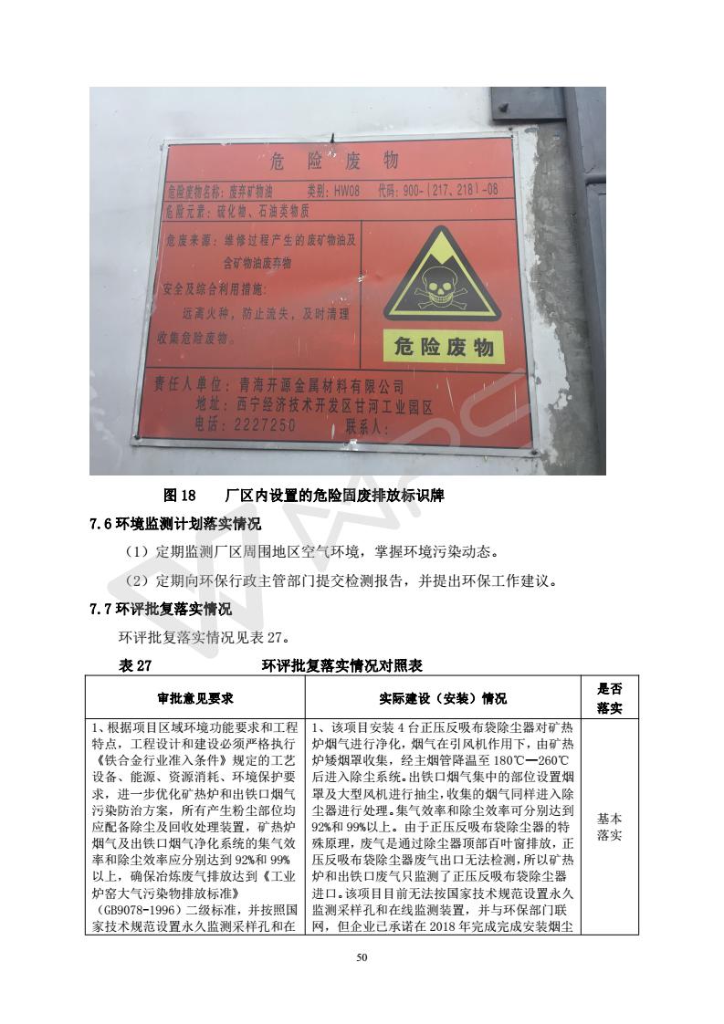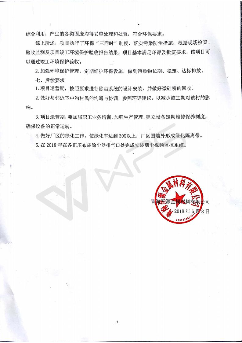 2018年1月11日,青海開源金屬材料有限公司組織召開20萬噸/年特殊硅鐵生產(chǎn)基地建設(shè)項目(一期工程)竣工環(huán)境保護驗收會。 青海開源金屬材料有限公司20萬噸特殊硅鐵生產(chǎn)基地建設(shè)項目(一期工程)驗收組意見.