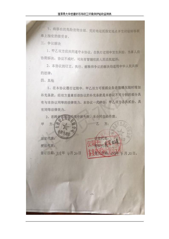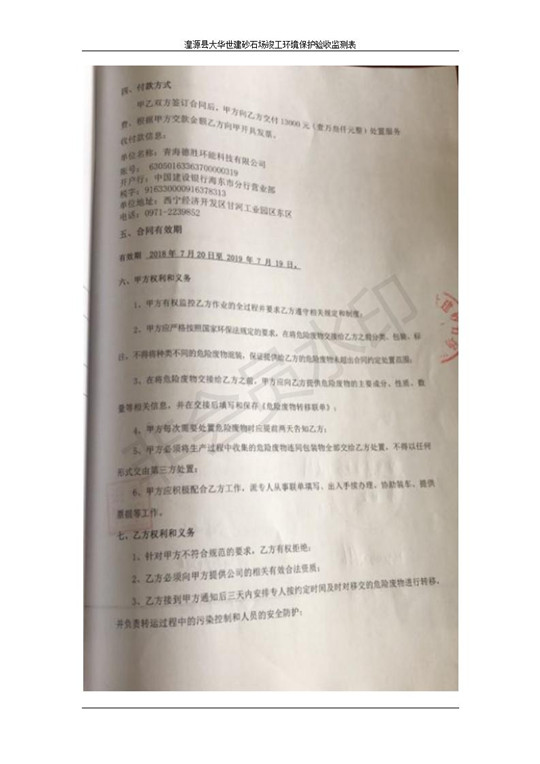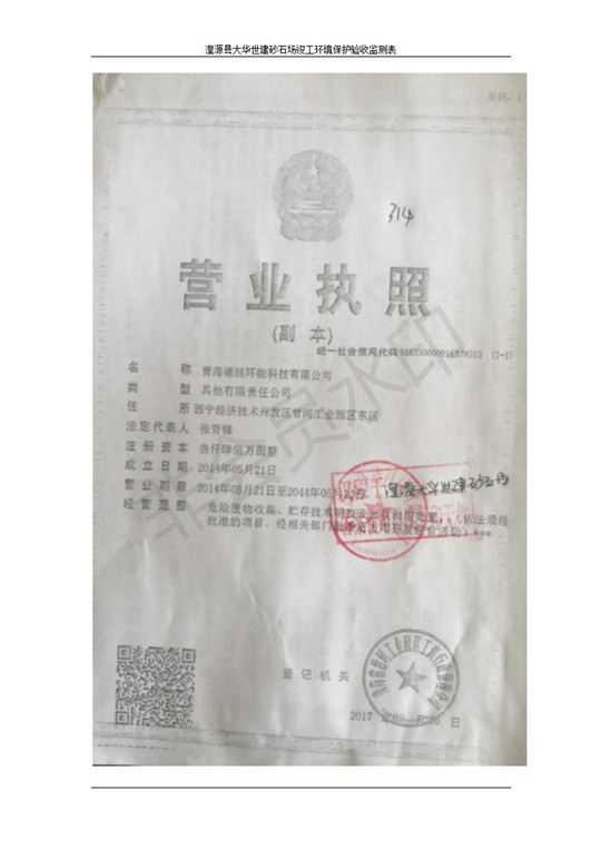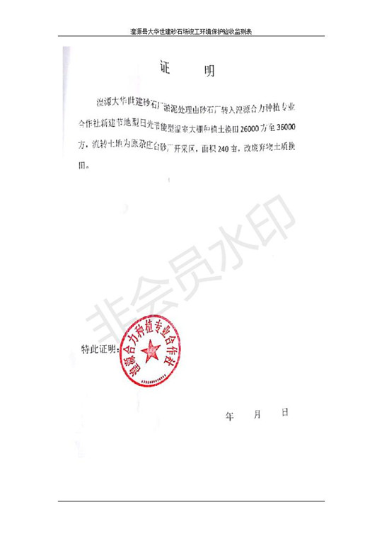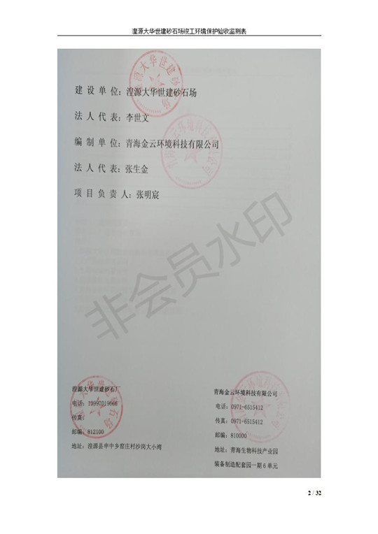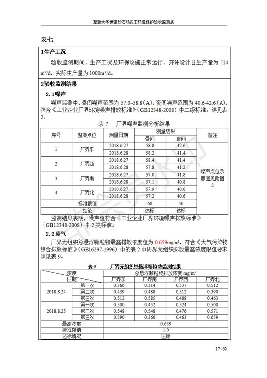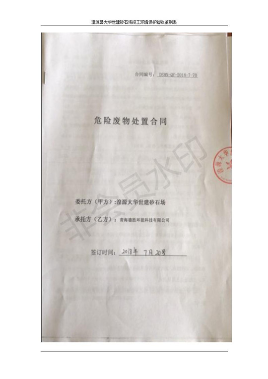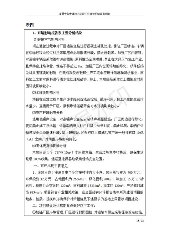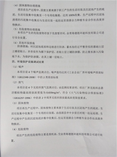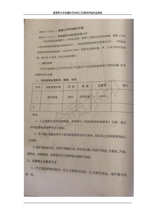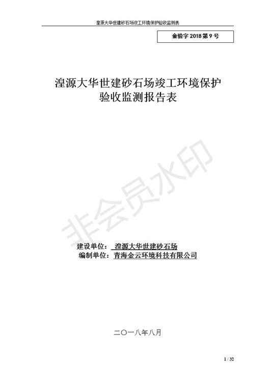 根據(jù)中華人民共和國國務(wù)院令第253號(hào)《建設(shè)項(xiàng)目環(huán)境保護(hù)管理?xiàng)l例》(中華人民共和國國務(wù)院令第682號(hào)《國務(wù)院關(guān)于修改〈建設(shè)項(xiàng)目環(huán)境保護(hù)管理?xiàng)l例〉的決定》和《建設(shè)項(xiàng)目竣工環(huán)境保護(hù)驗(yàn)收暫行辦法》,嚴(yán)格依照有關(guān)法律法規(guī),建設(shè)項(xiàng)目環(huán)境保護(hù)設(shè)施驗(yàn)收技術(shù)規(guī)范,本項(xiàng)目環(huán)評(píng)報(bào)告表和環(huán)保審批部門審批意見以及企業(yè)自行驗(yàn)收相關(guān)要求等對(duì)本項(xiàng)目進(jìn)行驗(yàn)收,本項(xiàng)目符合環(huán)保驗(yàn)收條件,可以通過環(huán)保驗(yàn)收。 湟源大華世建砂石場(chǎng)建設(shè)項(xiàng)目竣工環(huán)境保護(hù)驗(yàn)收意見.