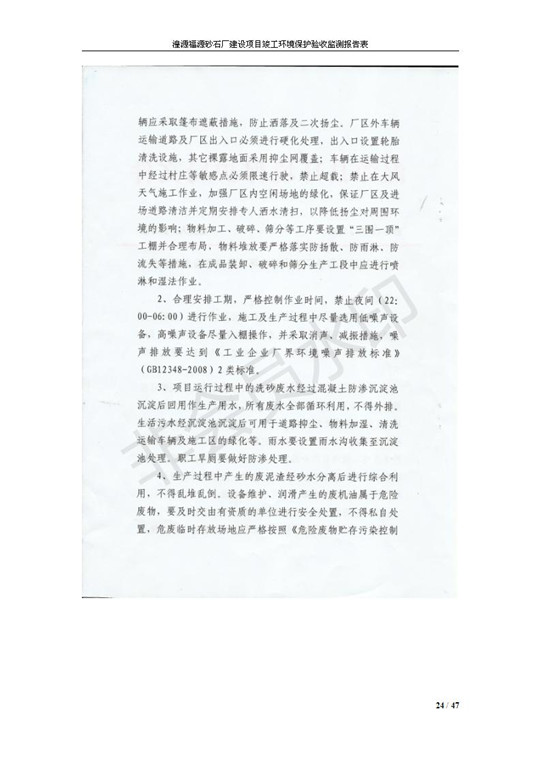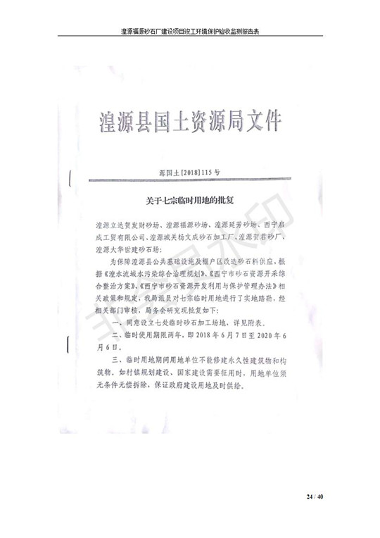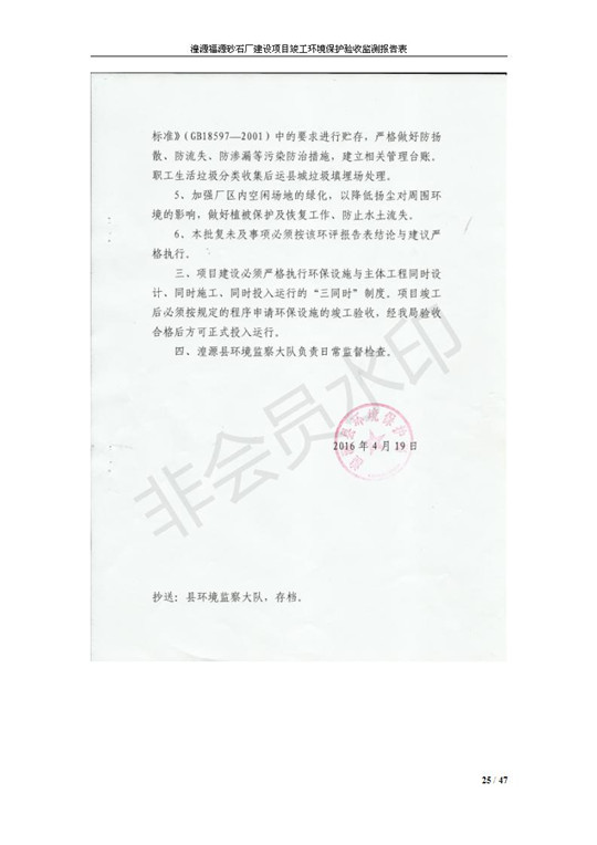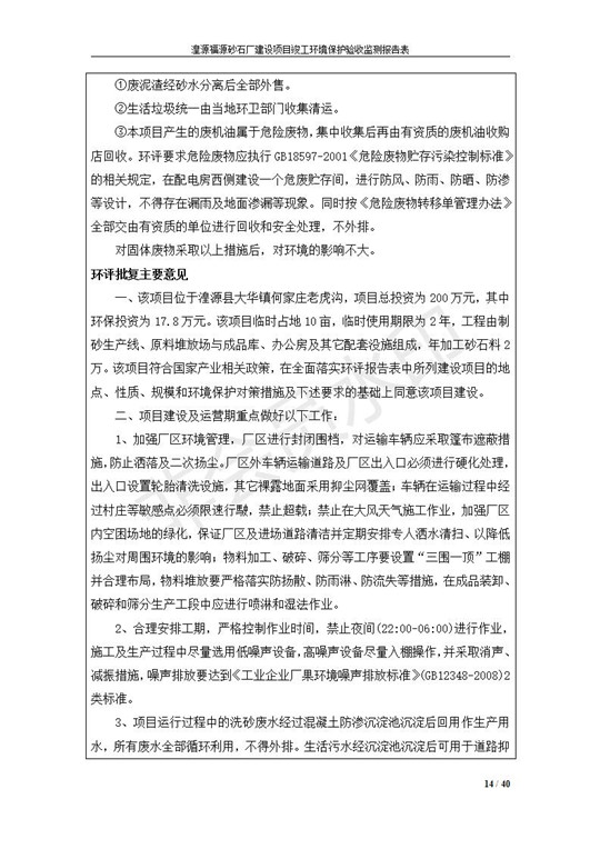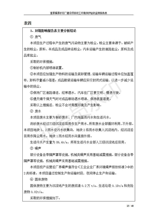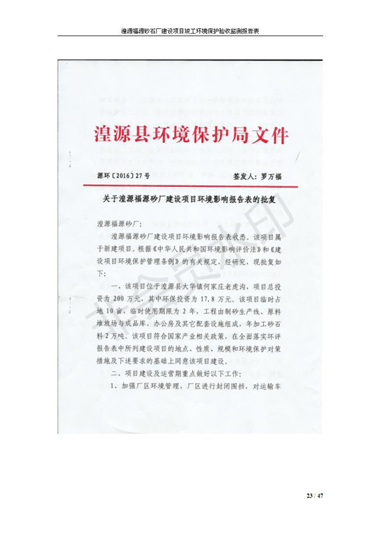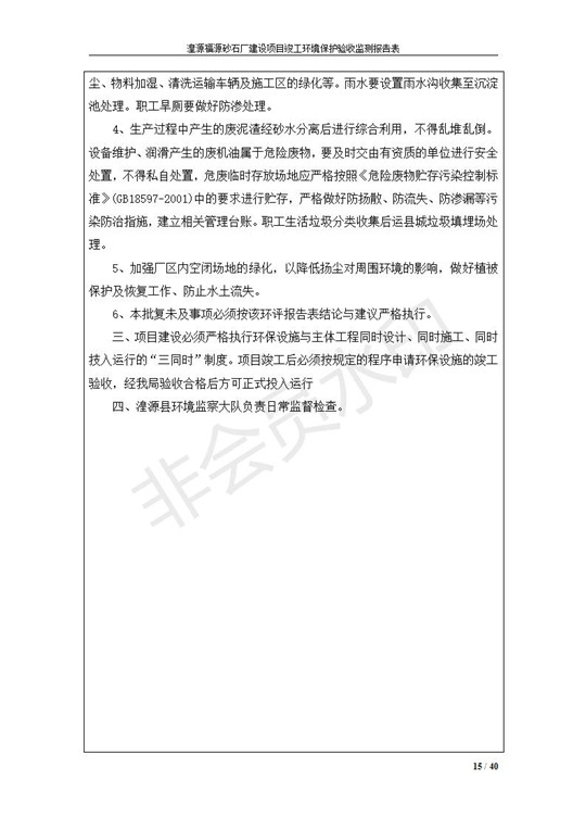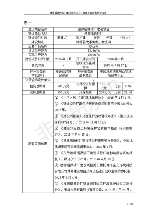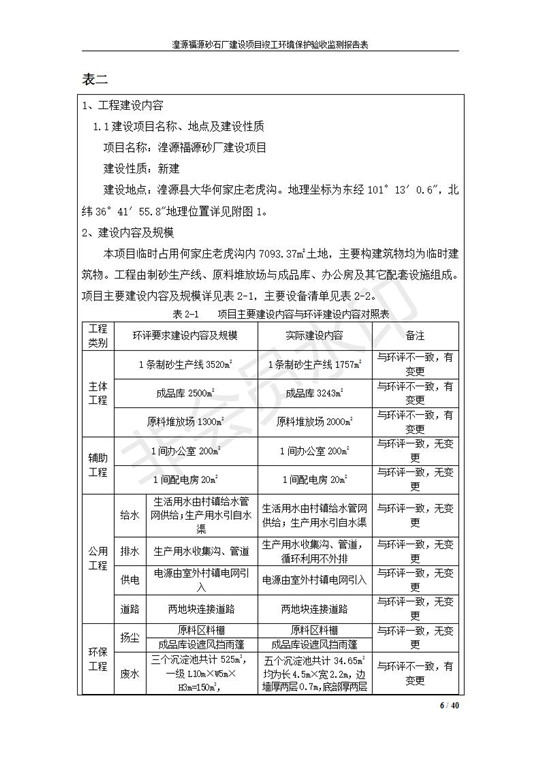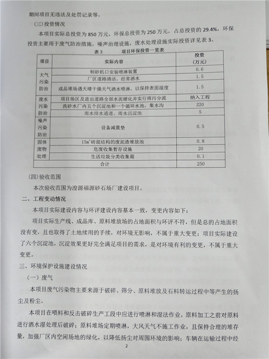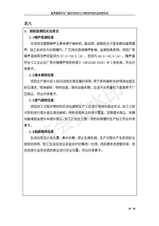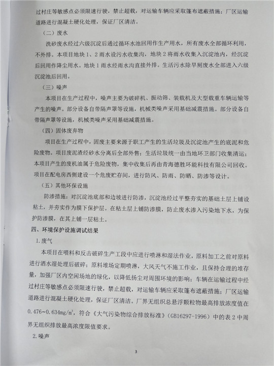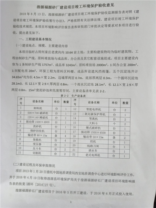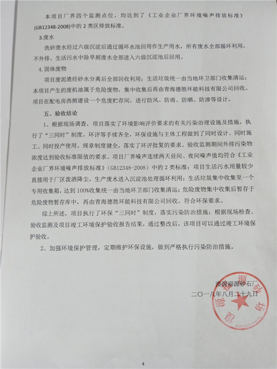 根據(jù)中華人民共和國(guó)國(guó)務(wù)院令第253號(hào)《建設(shè)項(xiàng)目環(huán)境保護(hù)管理?xiàng)l例》(中華人民共和國(guó)國(guó)務(wù)院令第682號(hào)《國(guó)務(wù)院關(guān)于修改〈建設(shè)項(xiàng)目環(huán)境保護(hù)管理?xiàng)l例〉的決定》和《建設(shè)項(xiàng)目竣工環(huán)境保護(hù)驗(yàn)收暫行辦法》,嚴(yán)格依照有關(guān)法律法規(guī),建設(shè)項(xiàng)目環(huán)境保護(hù)設(shè)施驗(yàn)收技術(shù)規(guī)范,本項(xiàng)目環(huán)評(píng)報(bào)告表和環(huán)保審批部門審批意見以及企業(yè)自行驗(yàn)收相關(guān)要求等對(duì)本項(xiàng)目進(jìn)行驗(yàn)收,本項(xiàng)目符合環(huán)保驗(yàn)收條件,可以通過環(huán)保驗(yàn)收。 湟源福砂廠建設(shè)項(xiàng)目竣工環(huán)境保護(hù)驗(yàn)收意見