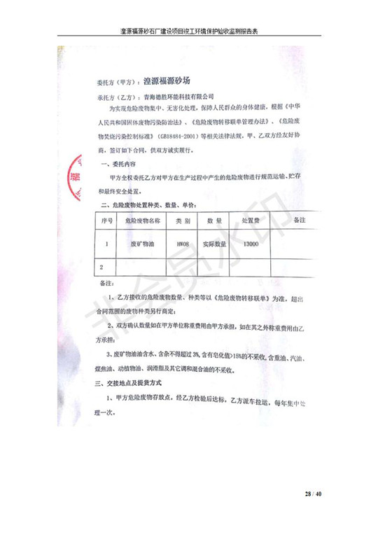 湟源福砂廠建設(shè)項(xiàng)目竣工環(huán)境保護(hù)驗(yàn)收發(fā)布日期:(2018-9-6) 點(diǎn)擊次數(shù):2040 |