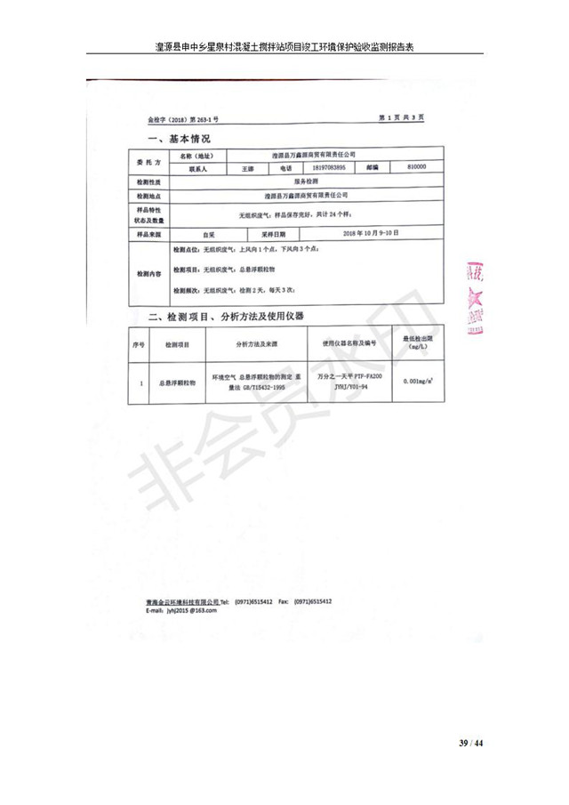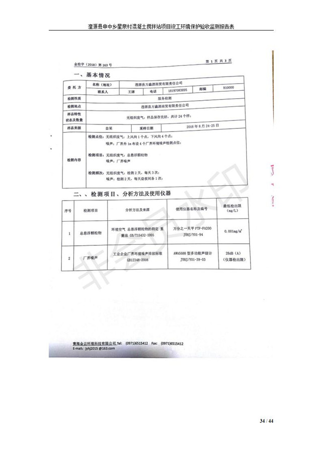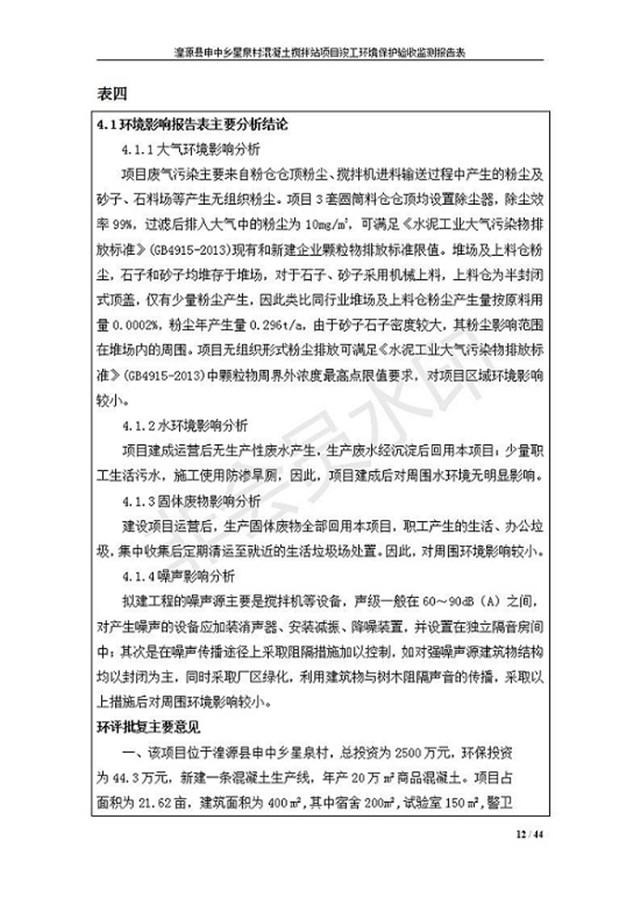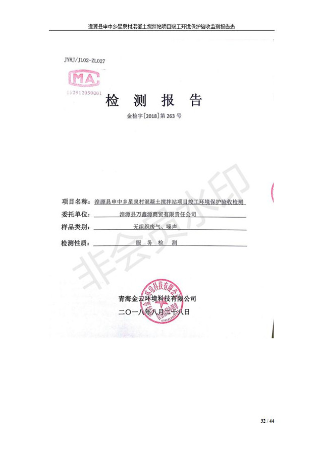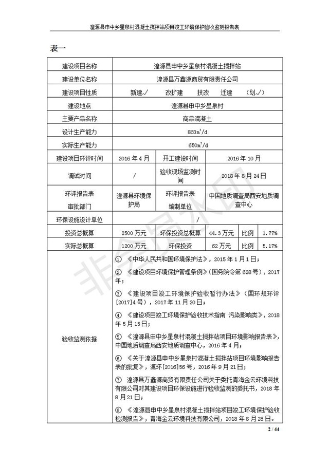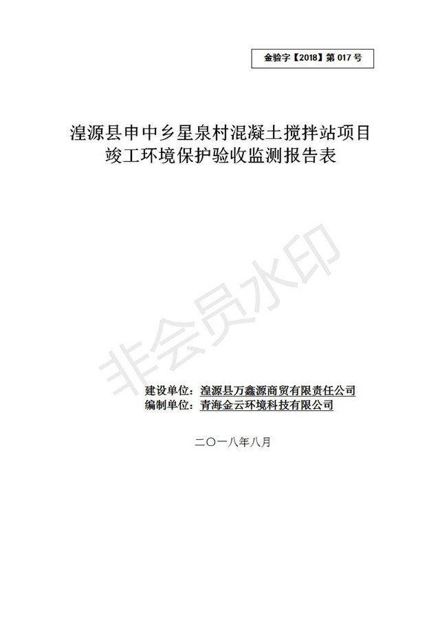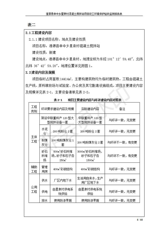 湟源縣申中鄉(xiāng)星泉村混凝土攪拌站項目竣工環(huán)境保護驗收監(jiān)測報告表公示