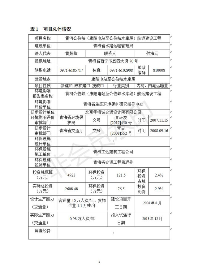黃河公伯峽(康楊電站至公伯峽水庫(kù)段)航運(yùn)建設(shè)工程竣工環(huán)境保護(hù)驗(yàn)收調(diào)查報(bào)告表公示發(fā)布日期:(2018-11-16) 點(diǎn)擊次數(shù):2440 |