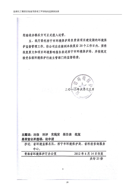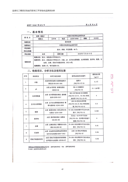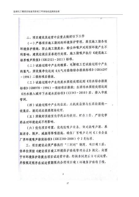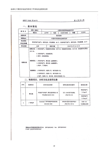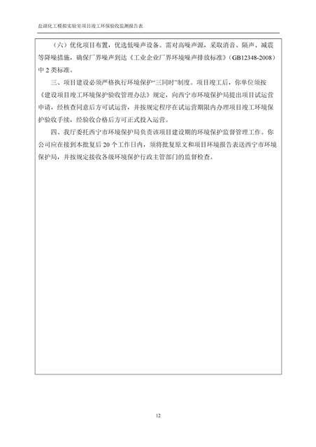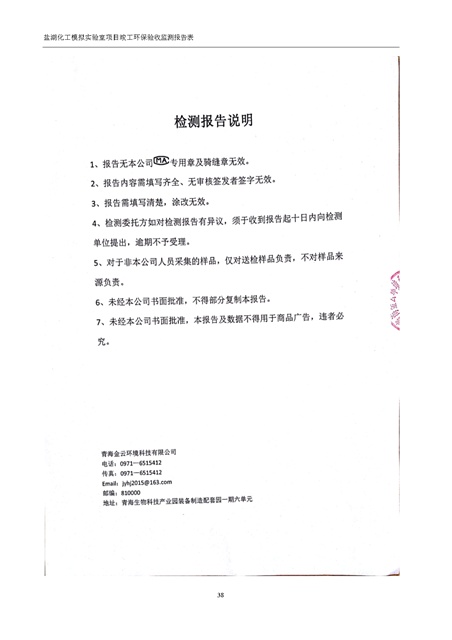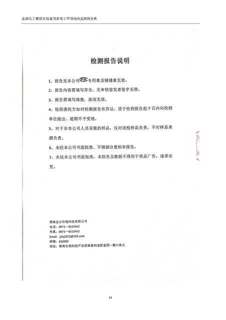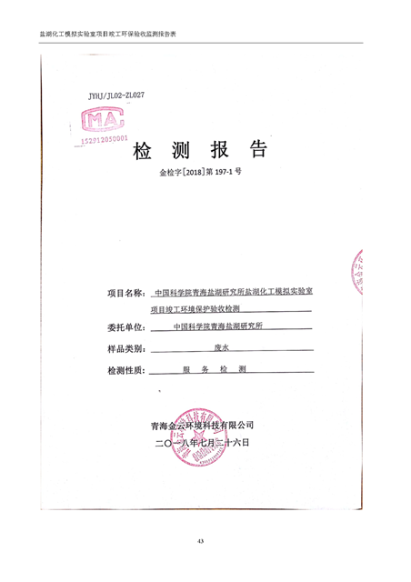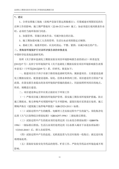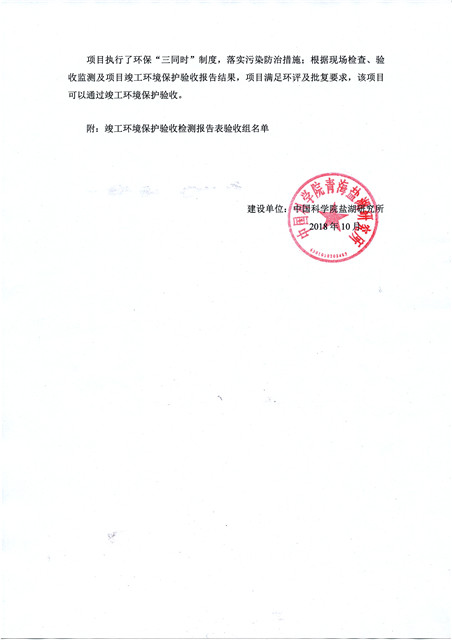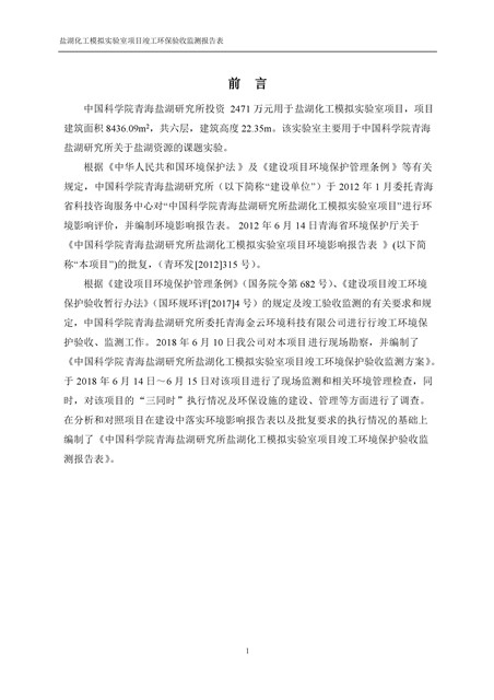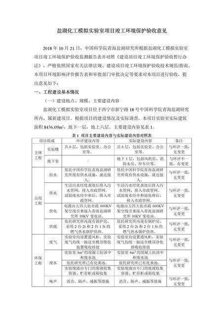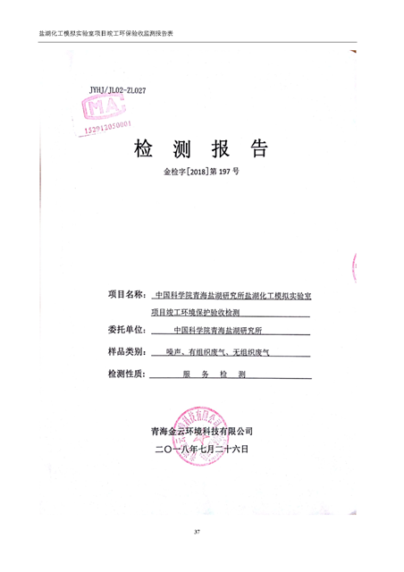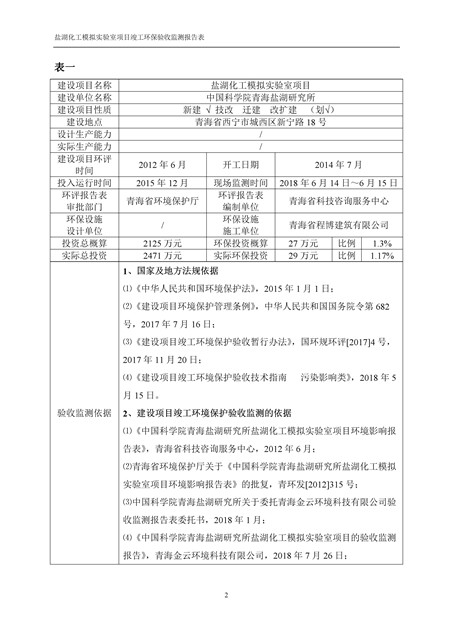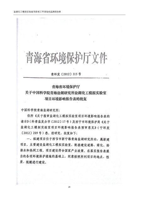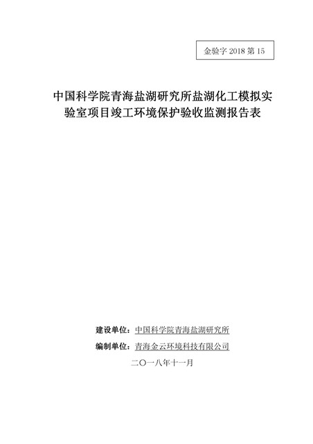 中國科學院青海鹽湖研究所鹽湖化工模擬實驗室項目竣工環(huán)境保護驗收監(jiān)測報告表公示發(fā)布日期:(2018-11-23) 點擊次數(shù):2147 |