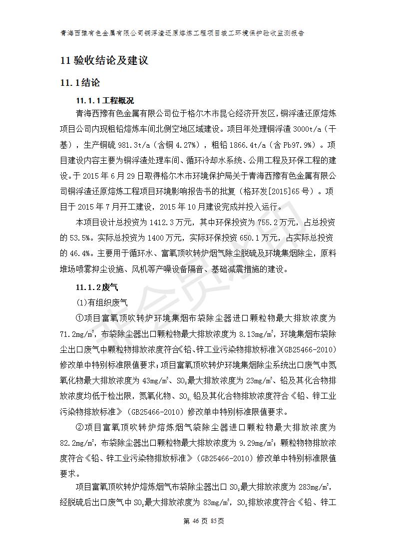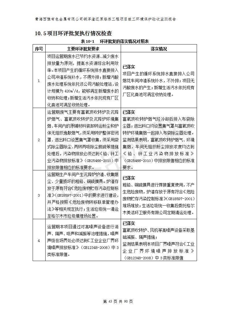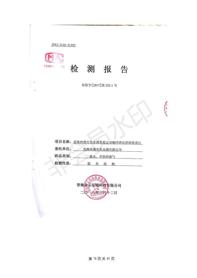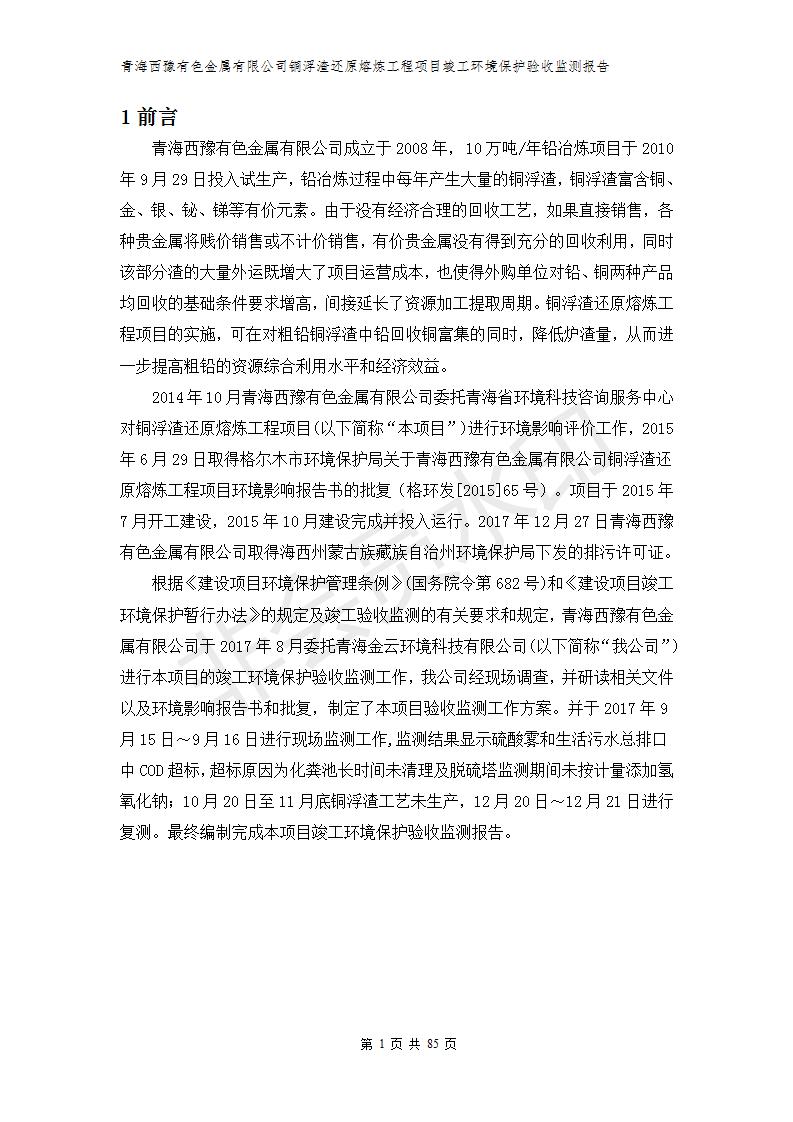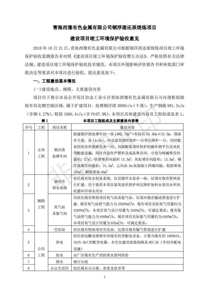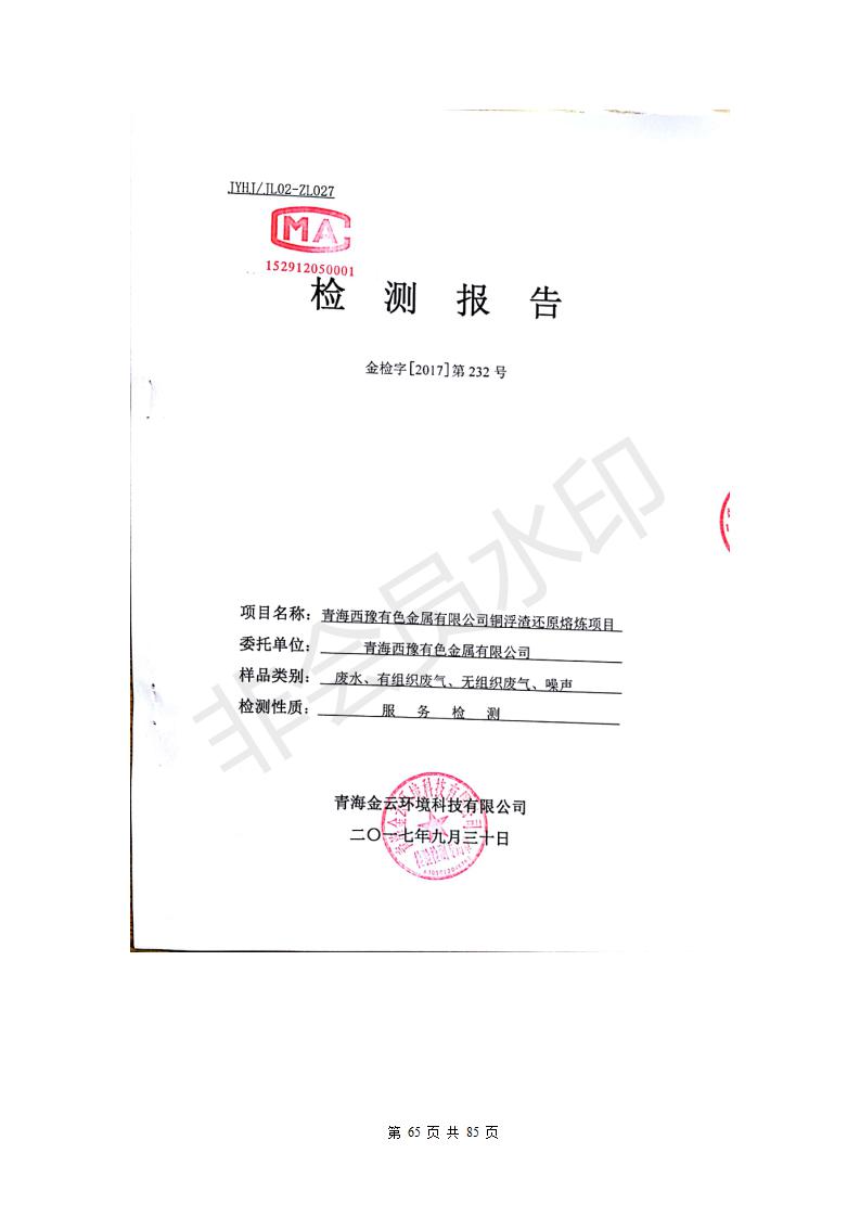 青海西豫有色金屬有限公司銅浮渣還原熔煉工程項(xiàng)目竣工環(huán)境保護(hù)驗(yàn)收監(jiān)測(cè)報(bào)告公示發(fā)布日期:(2018-11-23) 點(diǎn)擊次數(shù):2583 |