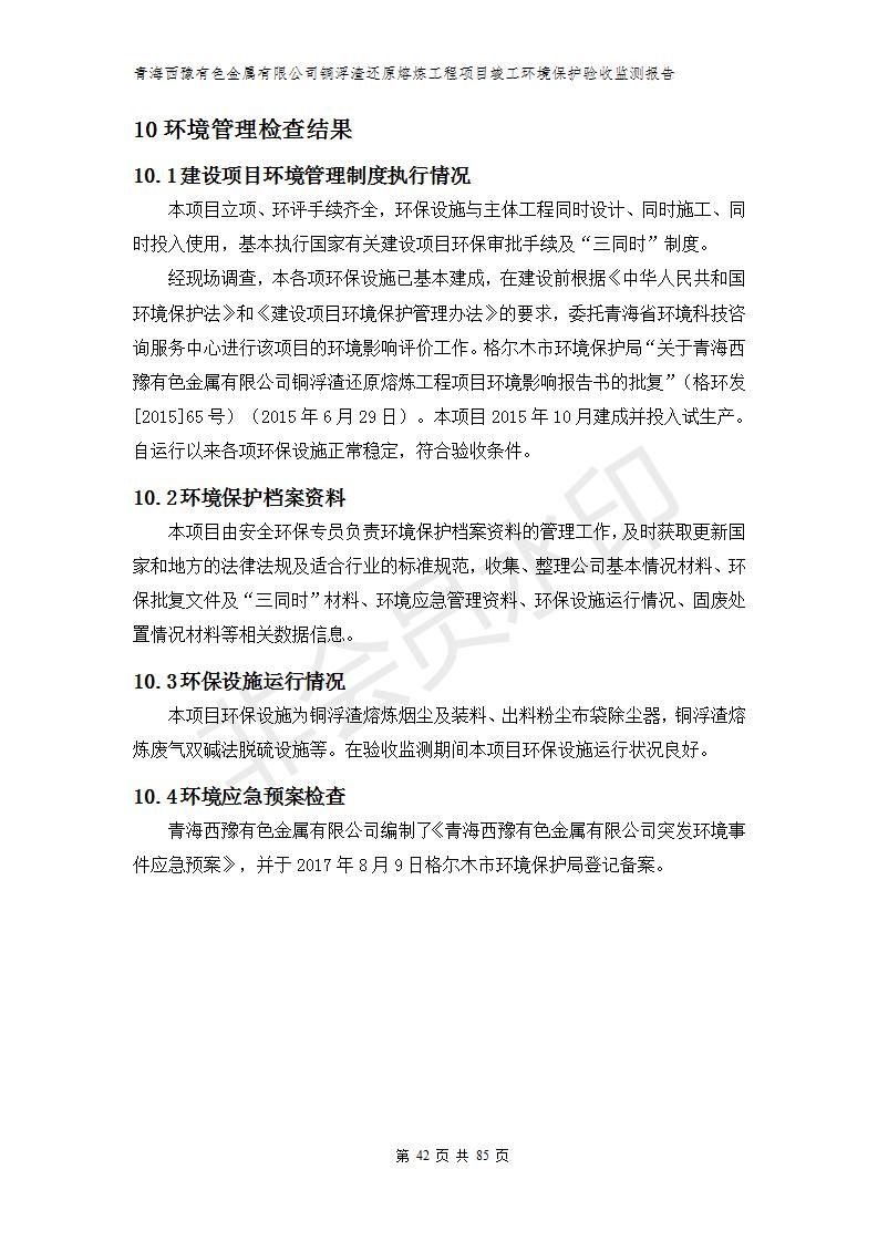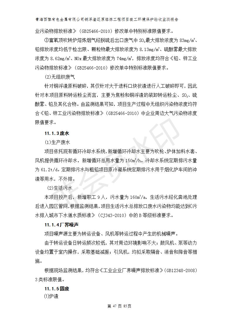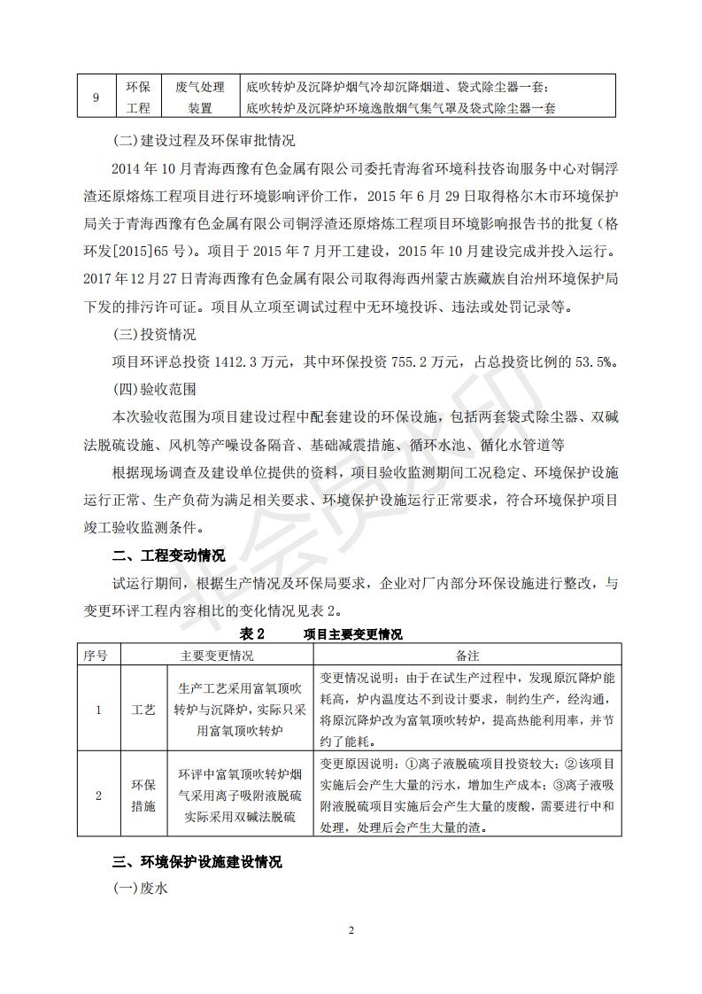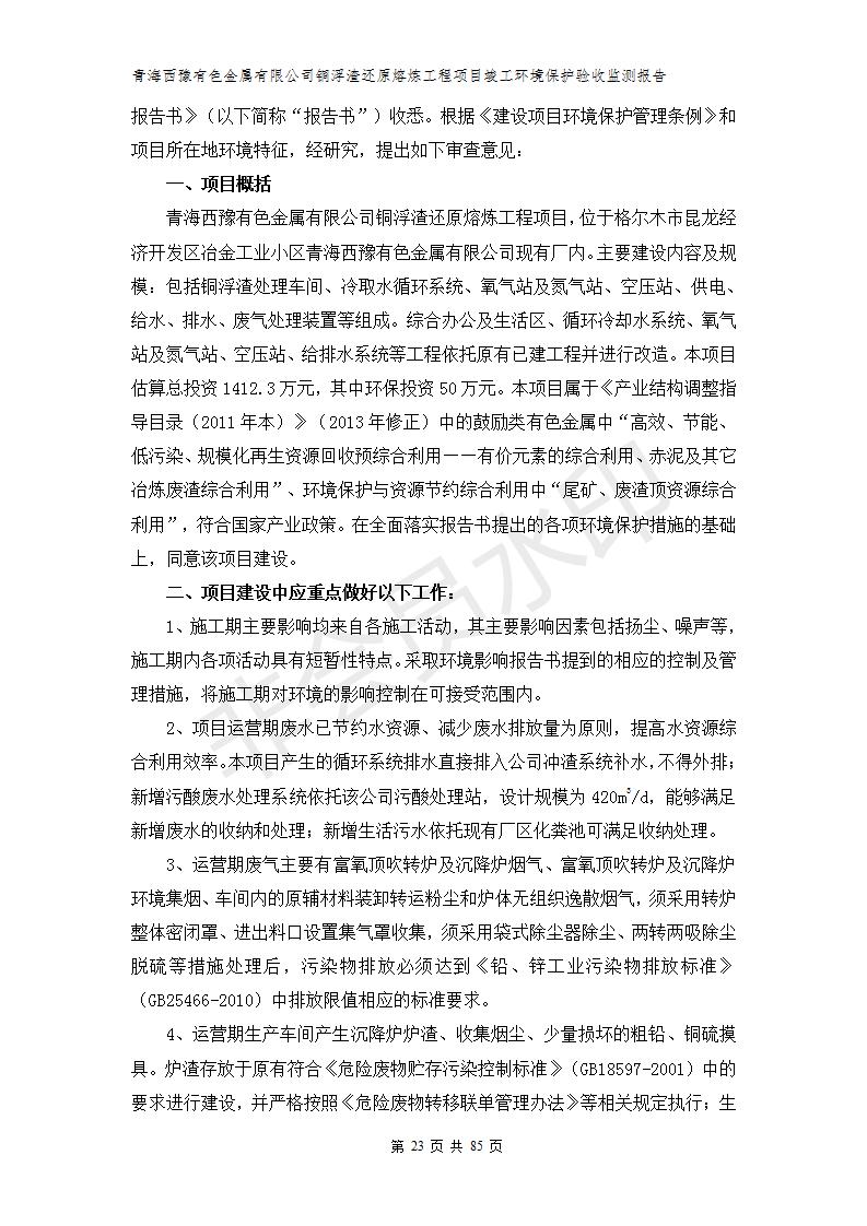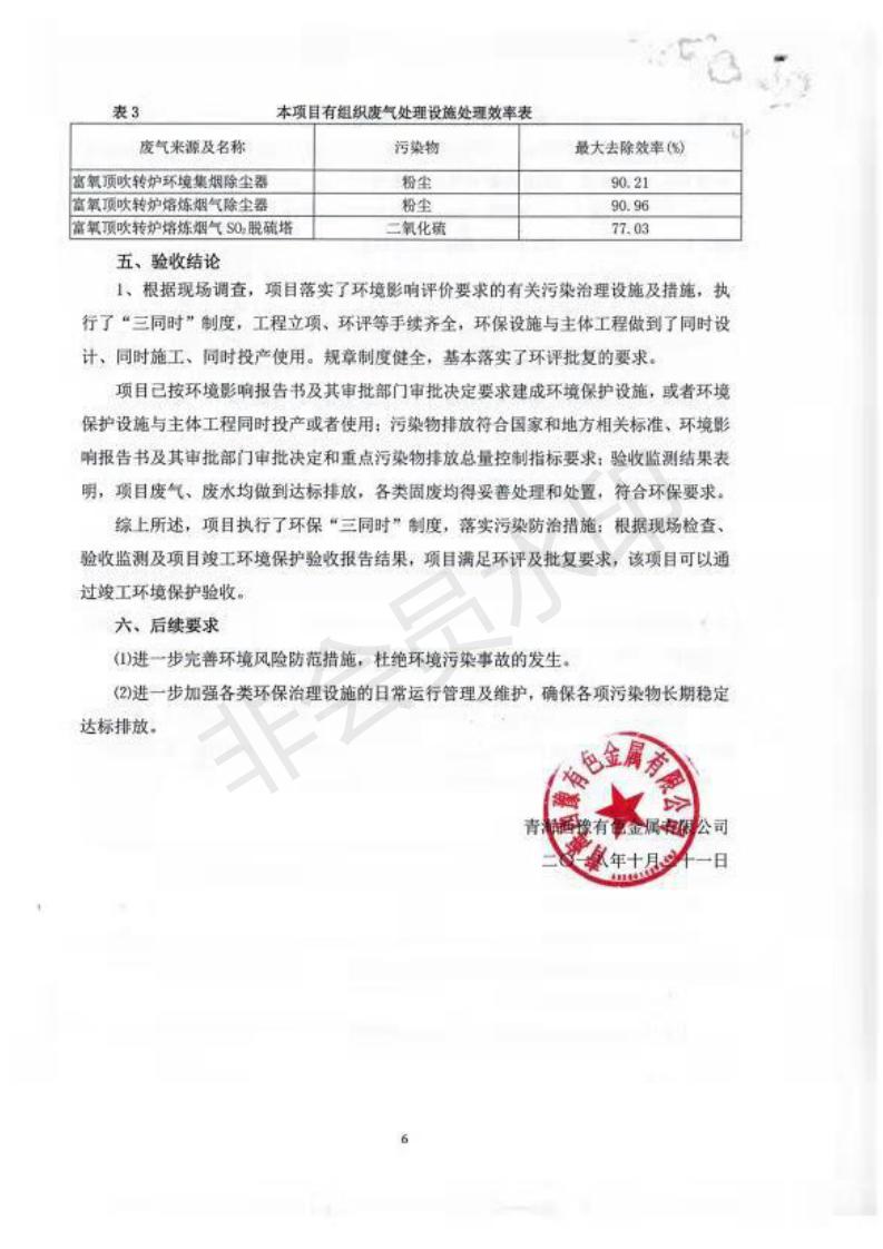 青海西豫有色金屬有限公司銅浮渣還原熔煉工程項(xiàng)目竣工環(huán)境保護(hù)驗(yàn)收監(jiān)測(cè)報(bào)告公示發(fā)布日期:(2018-11-23) 點(diǎn)擊次數(shù):2583 |
