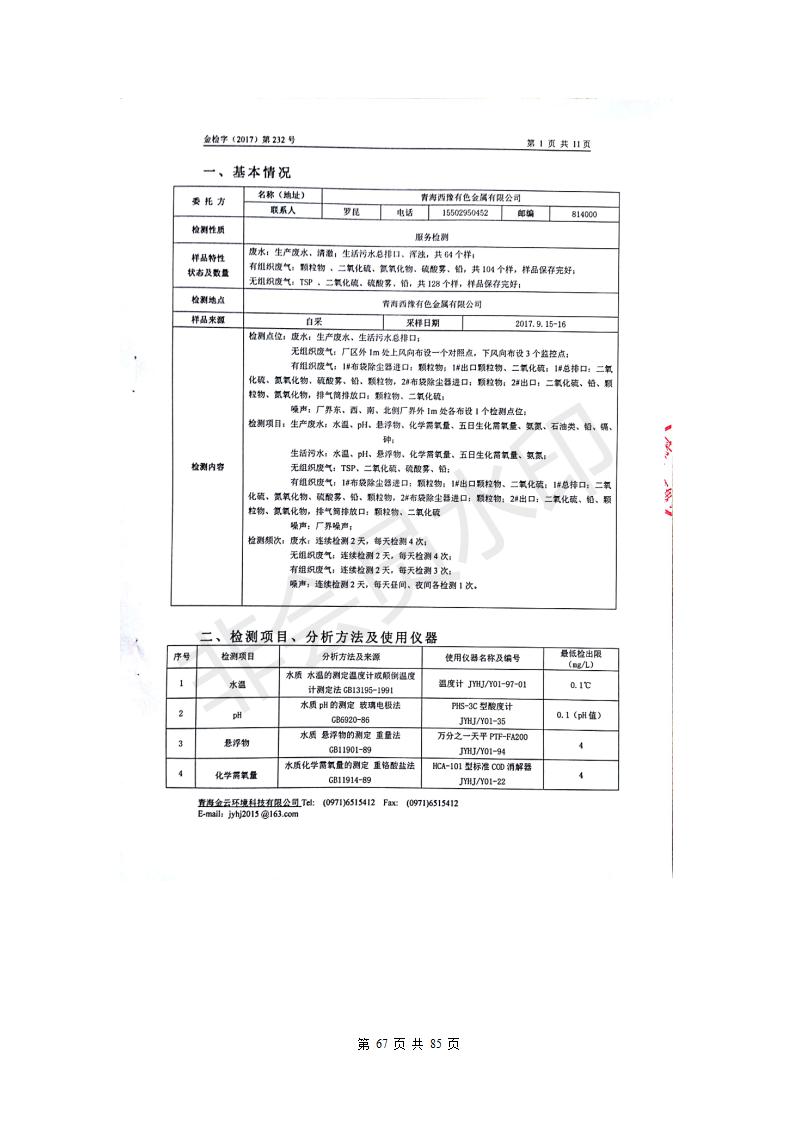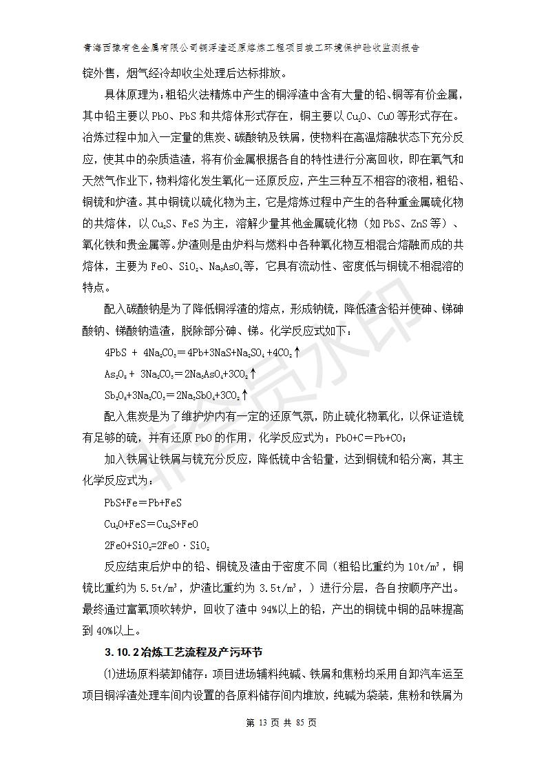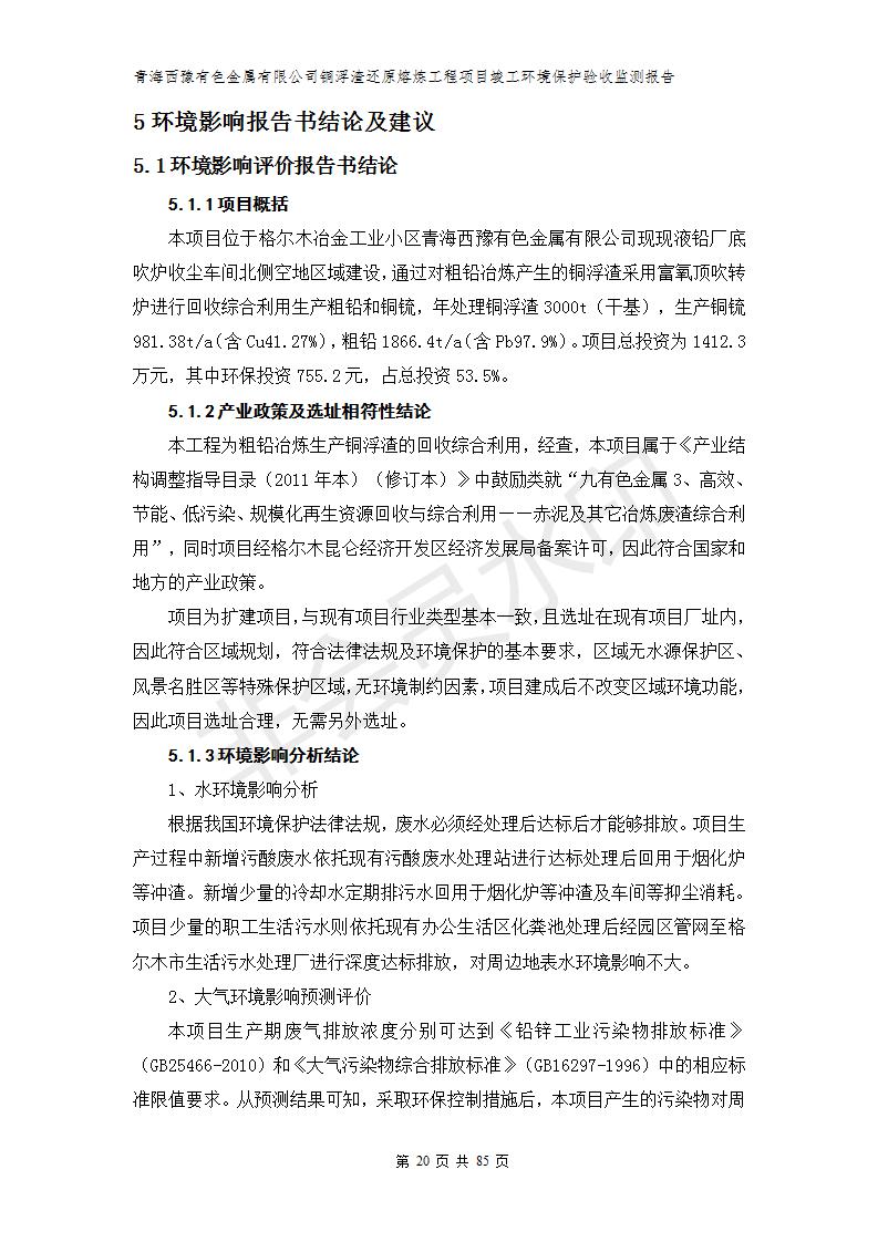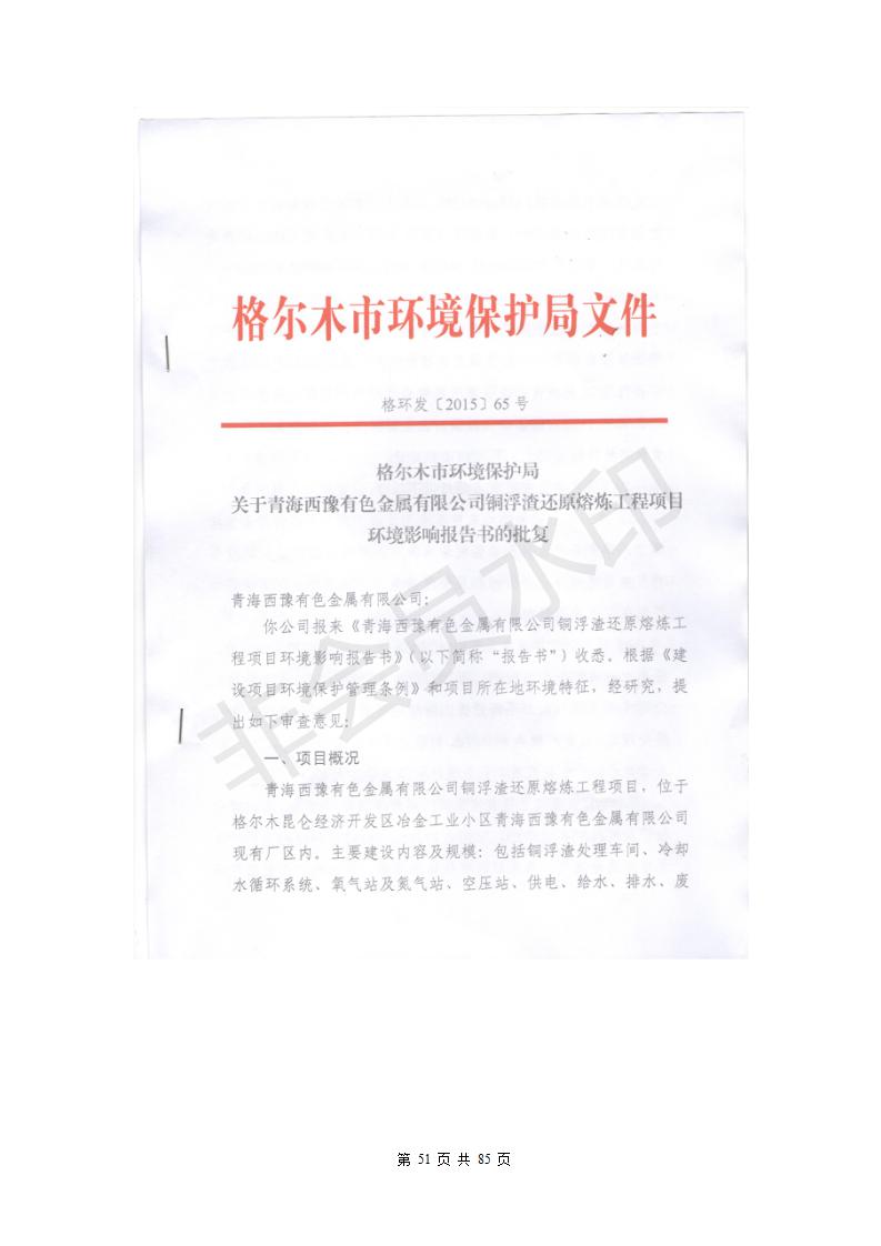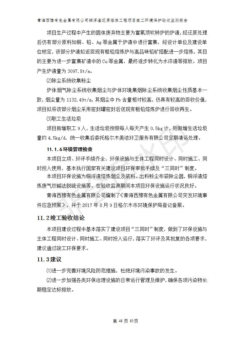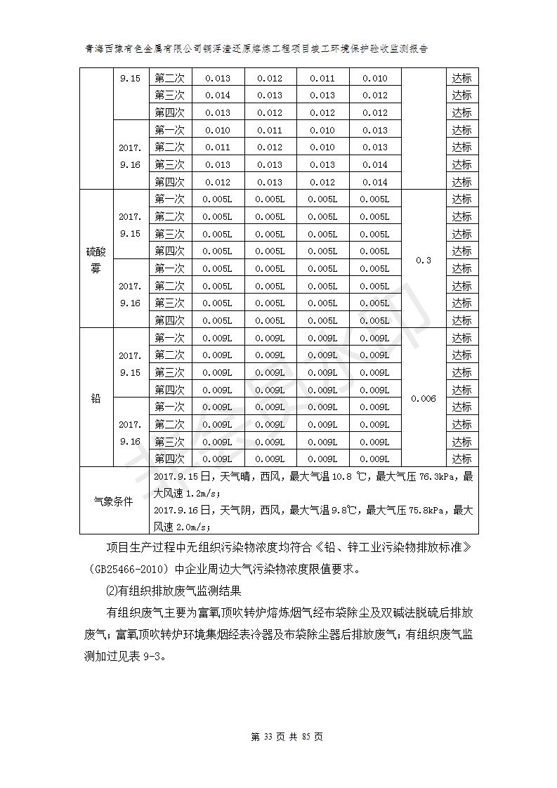 青海西豫有色金屬有限公司銅浮渣還原熔煉工程項(xiàng)目竣工環(huán)境保護(hù)驗(yàn)收監(jiān)測(cè)報(bào)告公示發(fā)布日期:(2018-11-23) 點(diǎn)擊次數(shù):2583 |