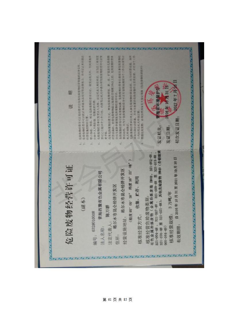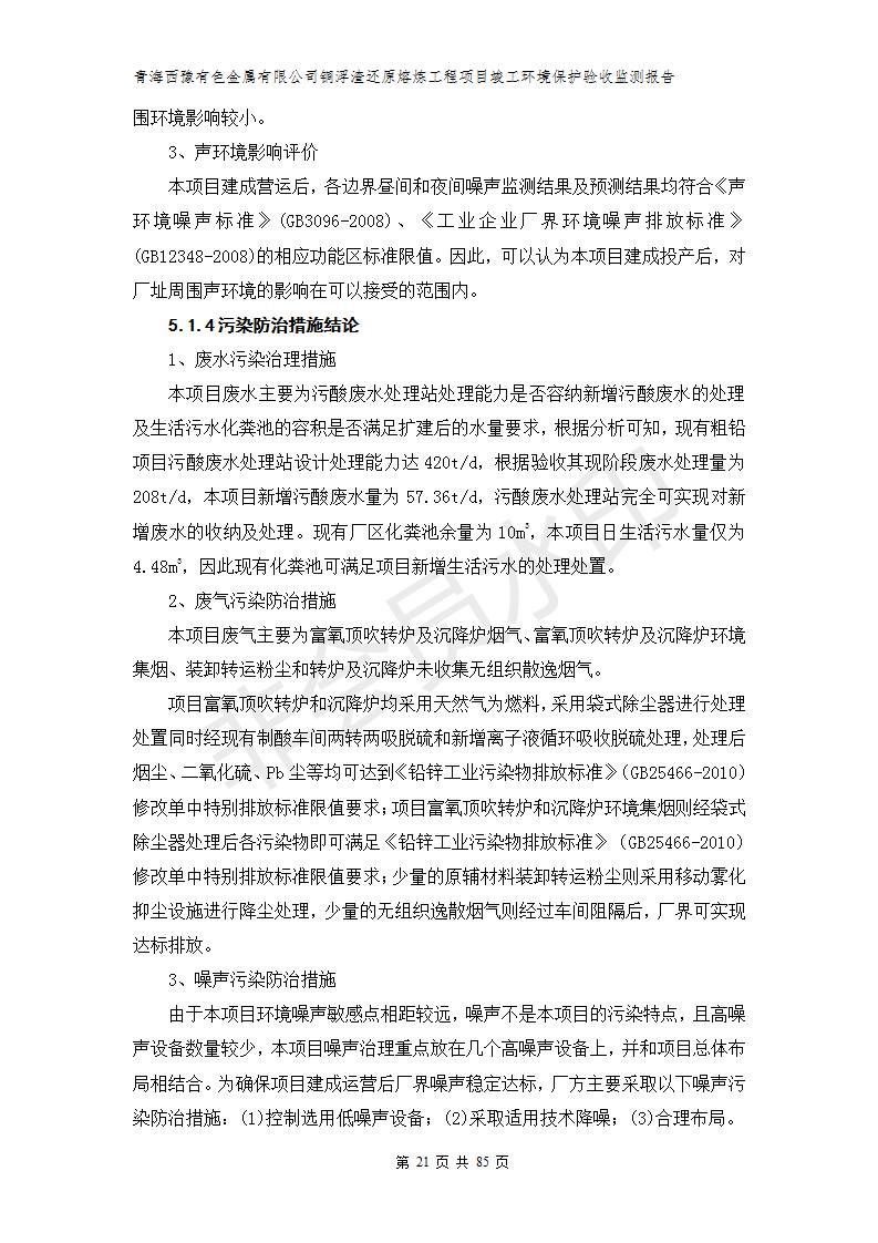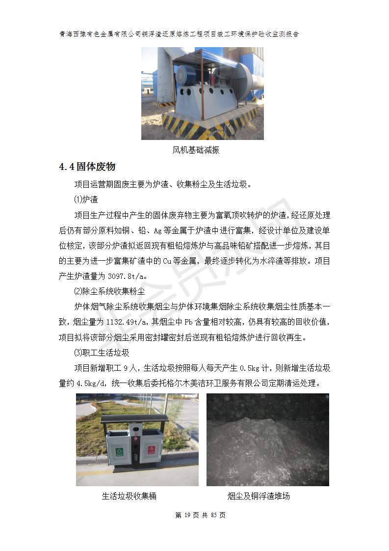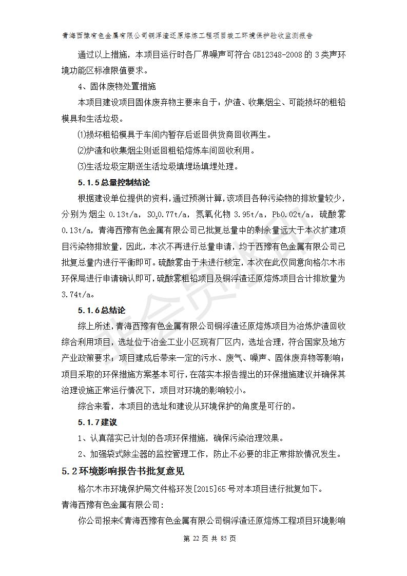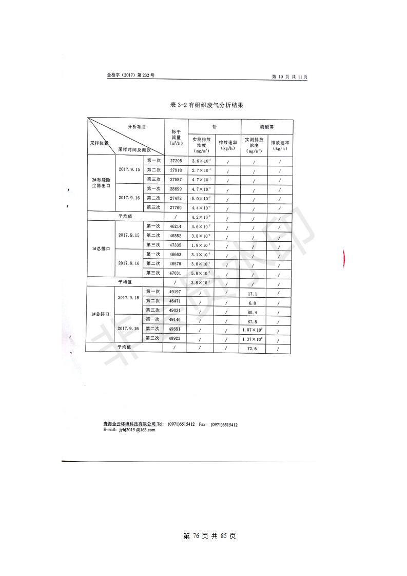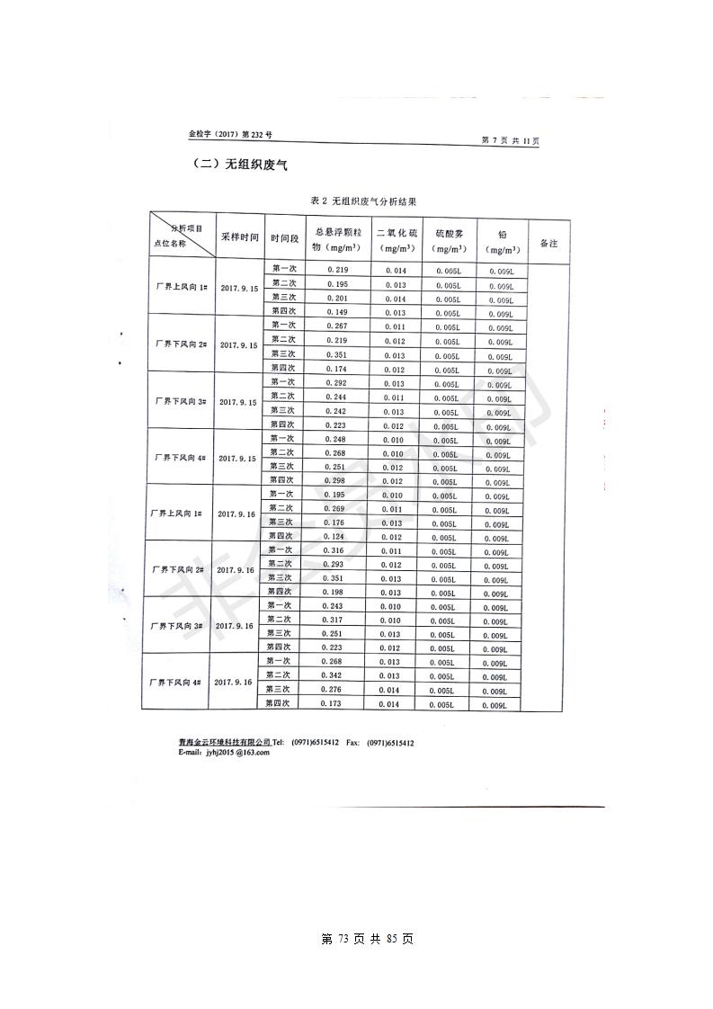 青海西豫有色金屬有限公司銅浮渣還原熔煉工程項(xiàng)目竣工環(huán)境保護(hù)驗(yàn)收監(jiān)測(cè)報(bào)告公示發(fā)布日期:(2018-11-23) 點(diǎn)擊次數(shù):2583 |