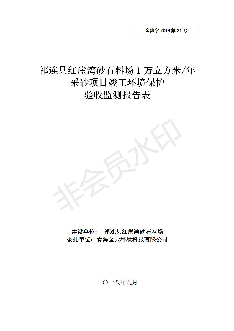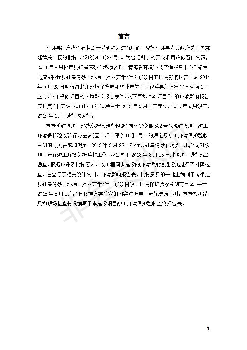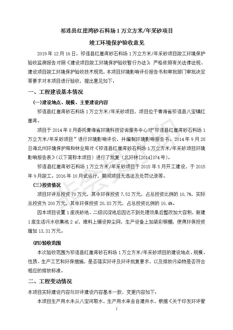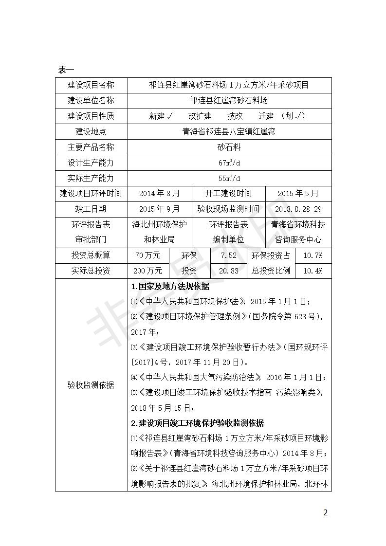 祁連縣紅崖灣砂石料場(chǎng)1萬(wàn)立方米/年采砂項(xiàng)目竣工環(huán)境保護(hù)驗(yàn)收監(jiān)測(cè)報(bào)告表公示