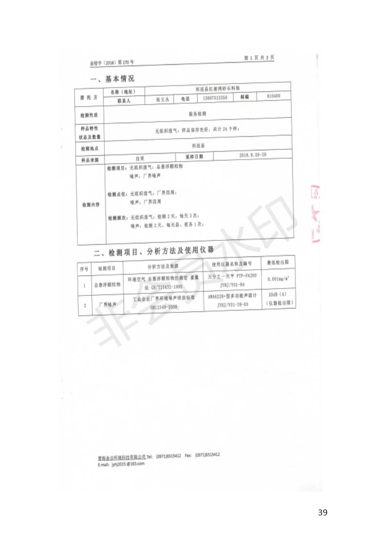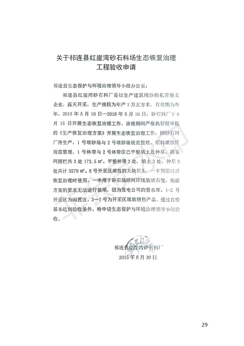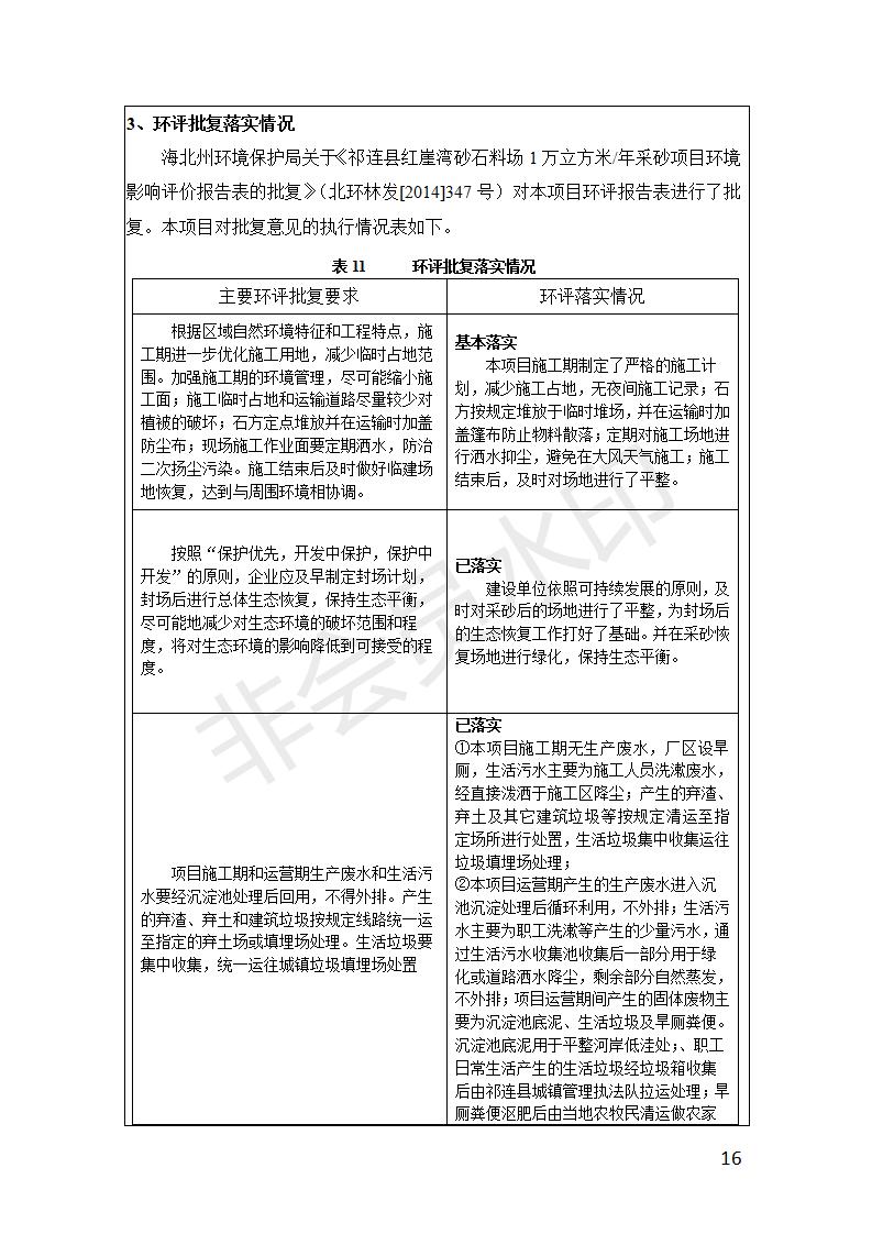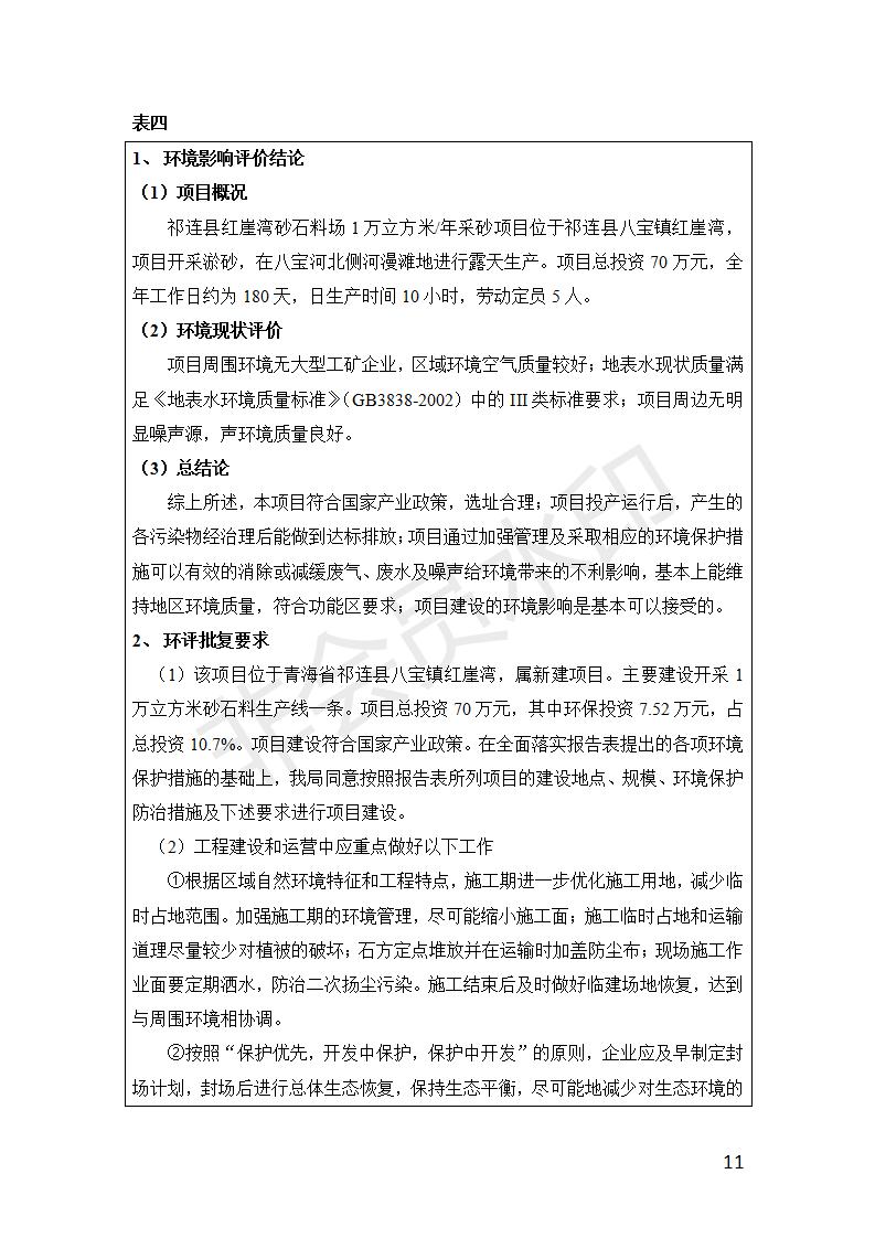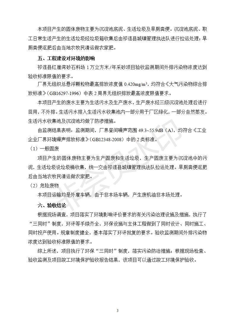 祁連縣紅崖灣砂石料場(chǎng)1萬(wàn)立方米/年采砂項(xiàng)目竣工環(huán)境保護(hù)驗(yàn)收監(jiān)測(cè)報(bào)告表公示