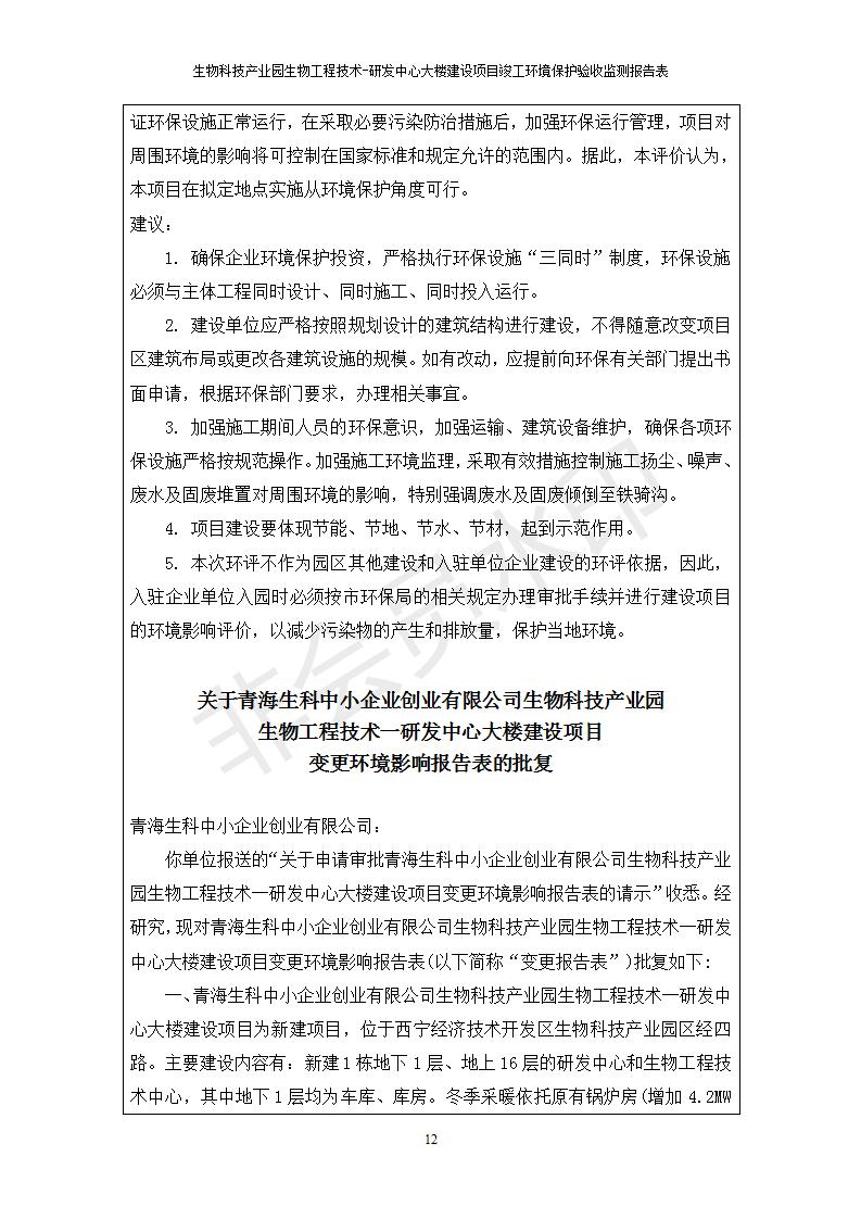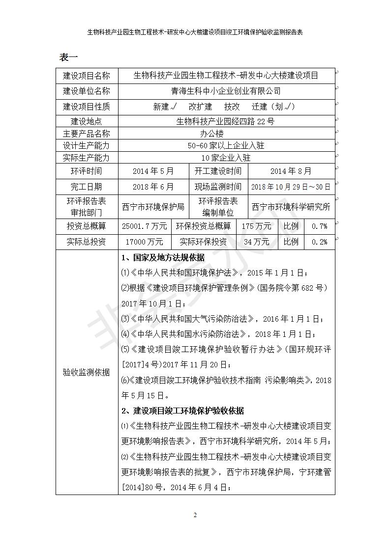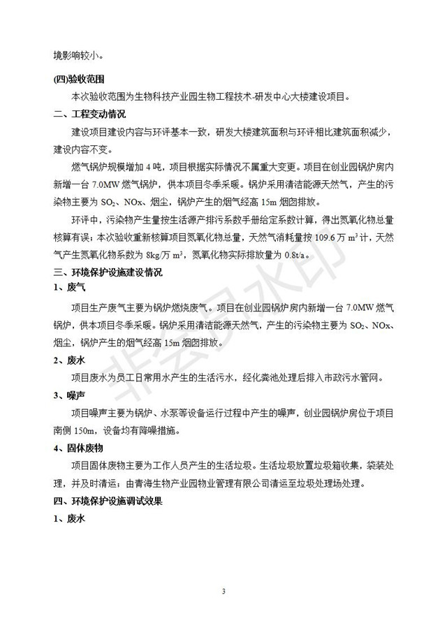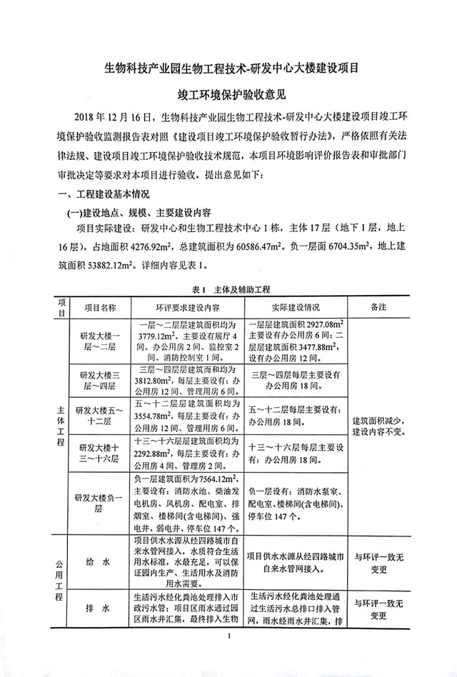 生物科技產(chǎn)業(yè)園生物工程技術(shù)-研發(fā)中心大樓建設(shè)項目竣工環(huán)境保護(hù)驗(yàn)收監(jiān)測報告表公示