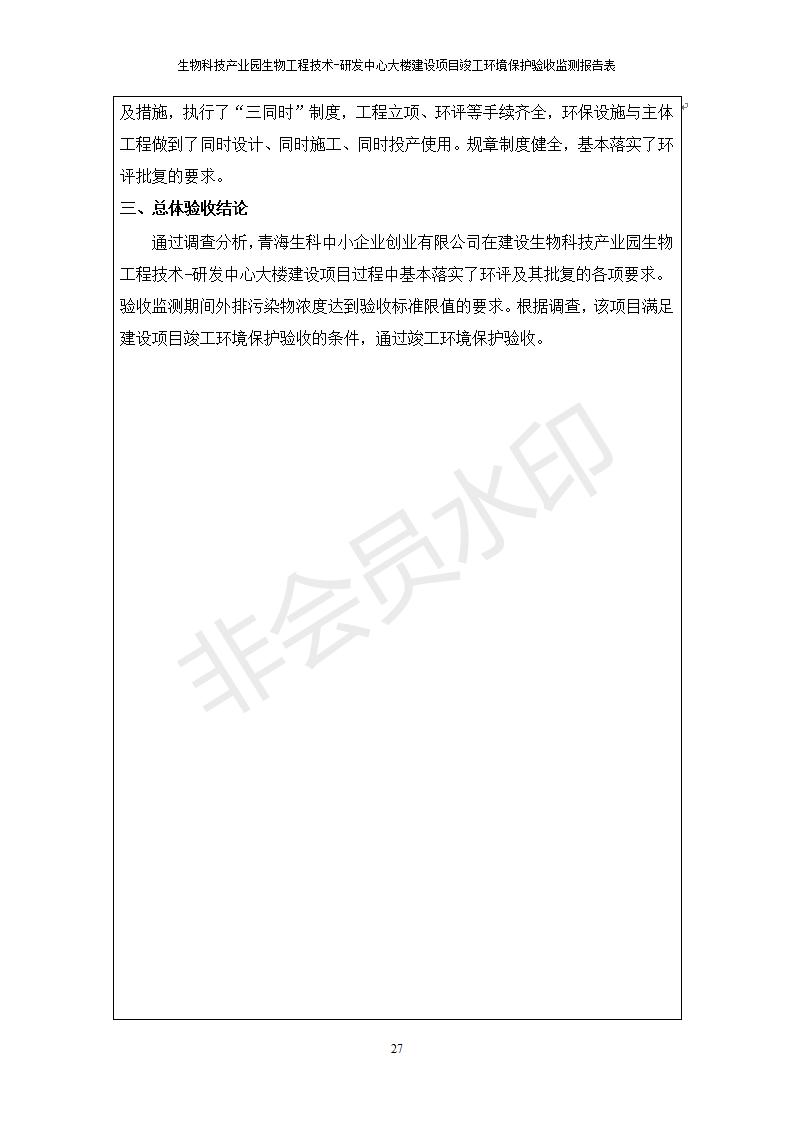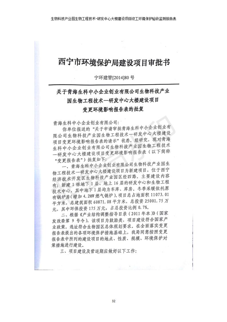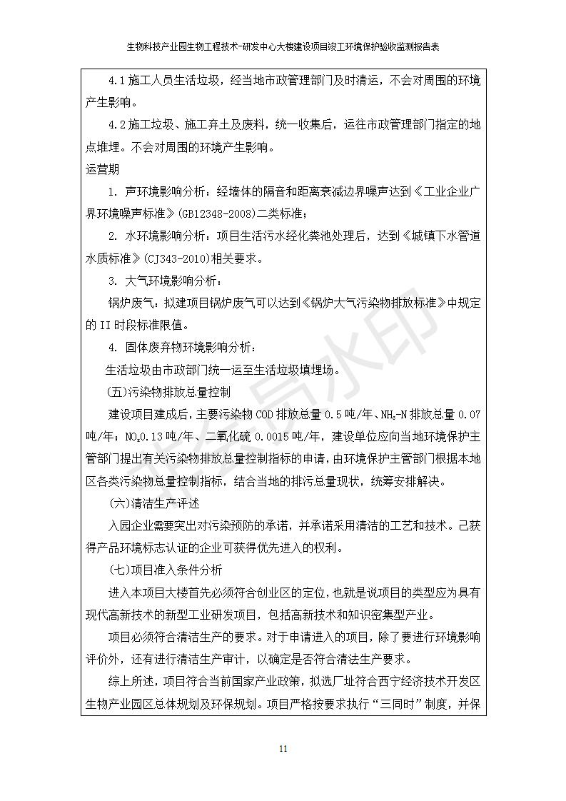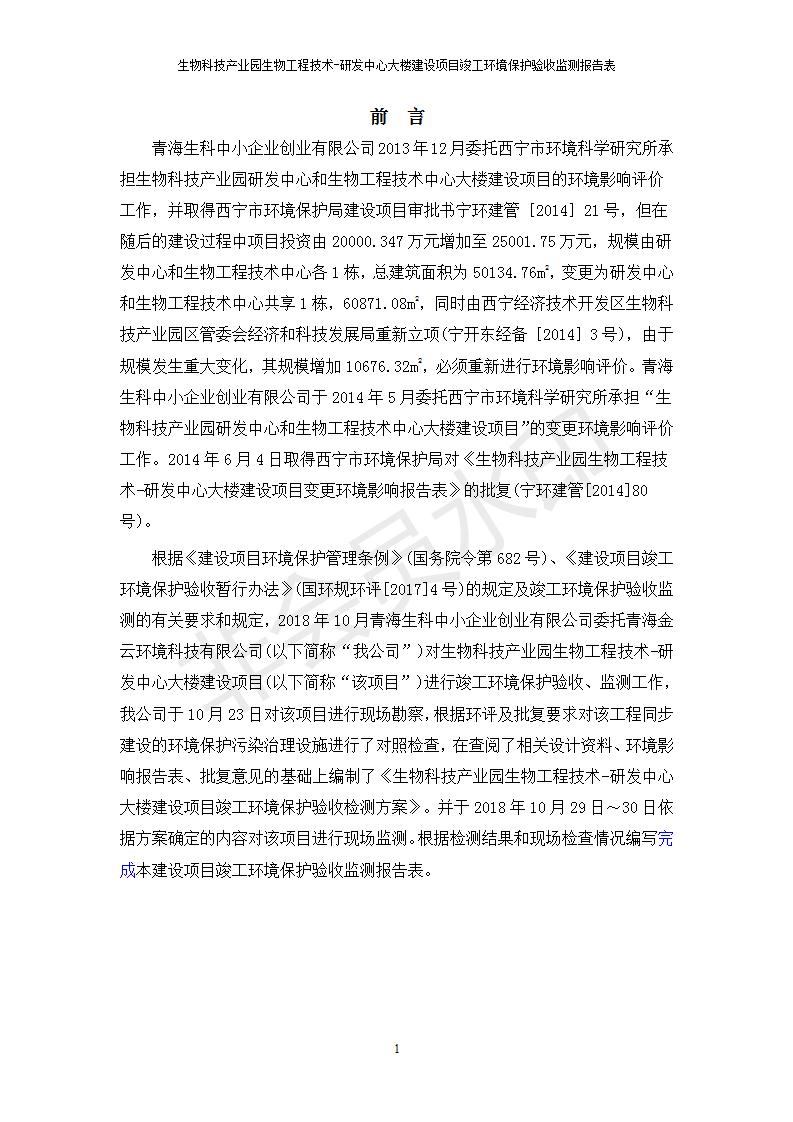 生物科技產(chǎn)業(yè)園生物工程技術(shù)-研發(fā)中心大樓建設(shè)項目竣工環(huán)境保護(hù)驗(yàn)收監(jiān)測報告表公示