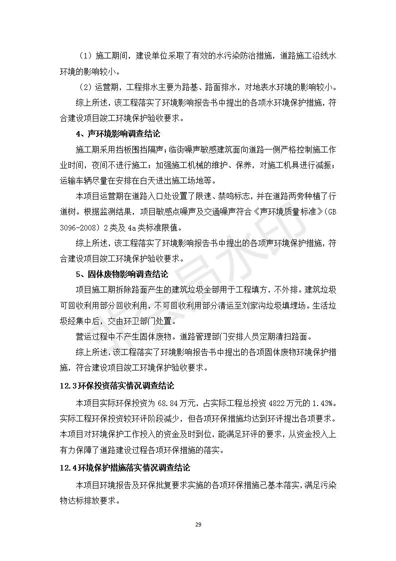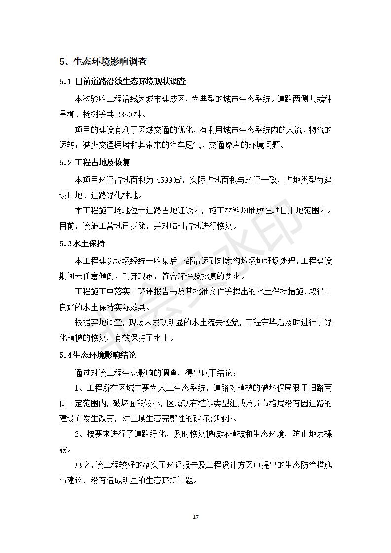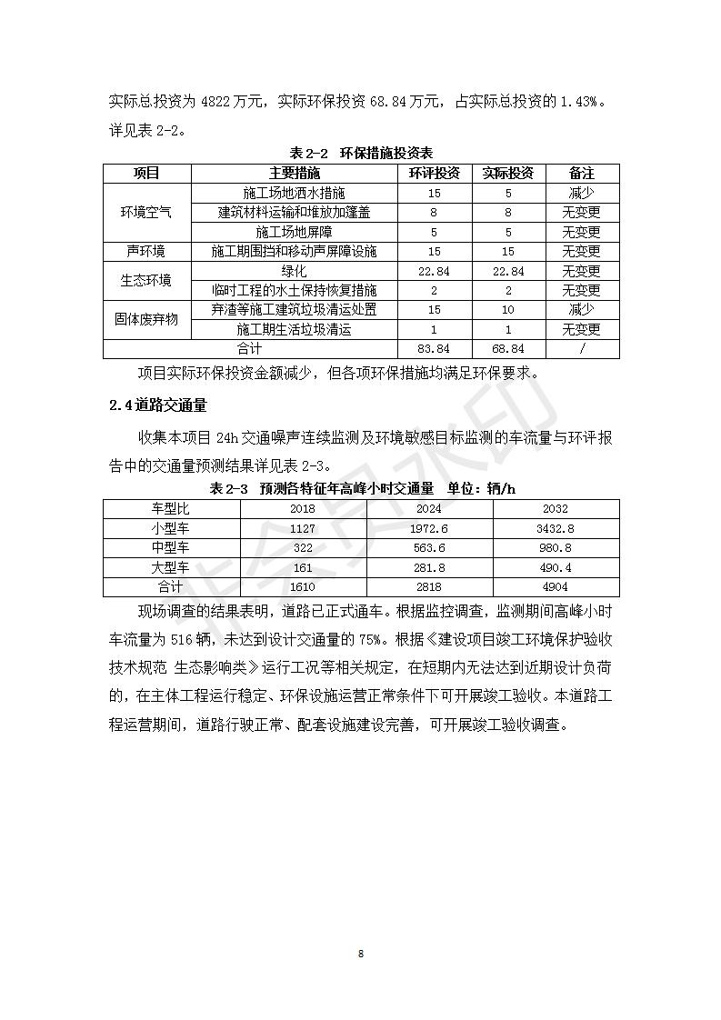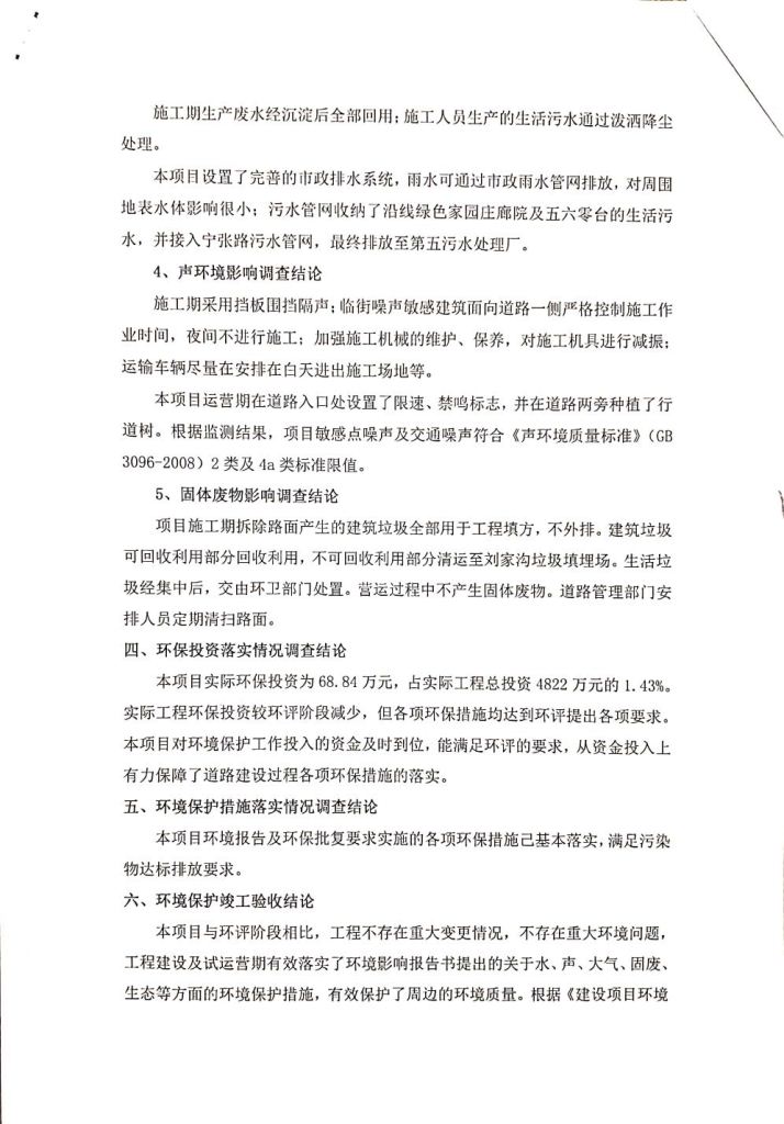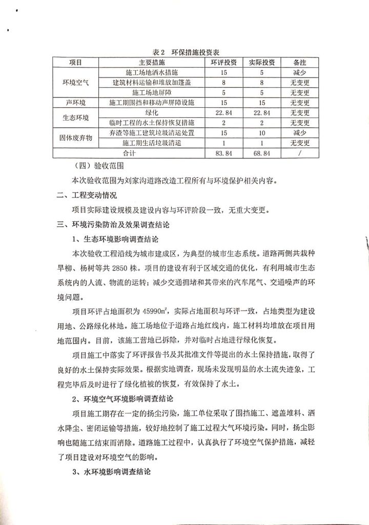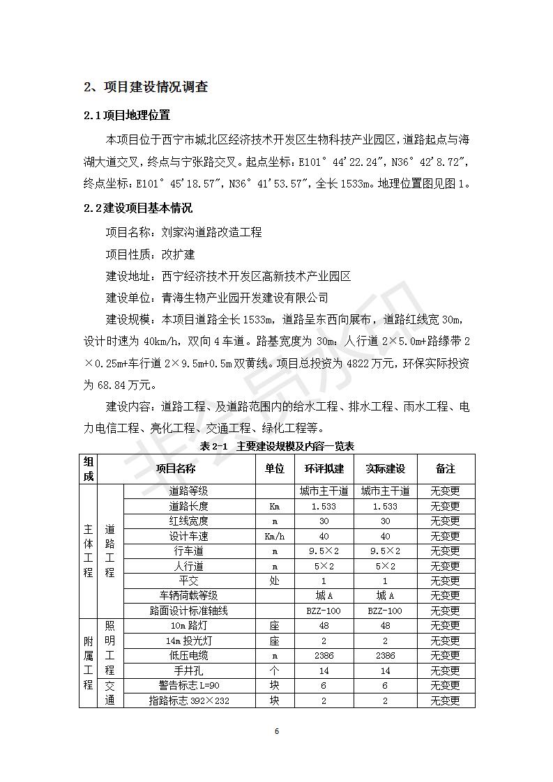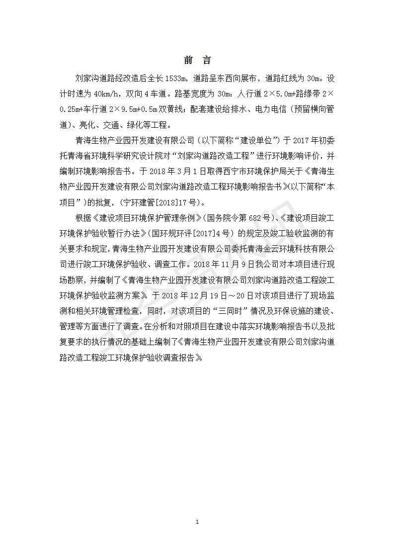 根據(jù)中華人民共和國務(wù)院令第682號《國務(wù)院關(guān)于修改〈建設(shè)項目環(huán)境保護管理條例〉的決定》和《建設(shè)項目竣工環(huán)境保護驗收暫行辦法》(國務(wù)院令682號),劉家溝道路改造工程竣工環(huán)境保護驗收內(nèi)容(包括竣工環(huán)境保護驗收調(diào)查報告和驗收意見)公示如下: 一、項目名稱:劉家溝道路改造工程 二、地點:青海省西寧市城北區(qū)生物園區(qū) 三、建設(shè)單位:生物產(chǎn)業(yè)園開發(fā)建設(shè)有限公司 四、建設(shè)內(nèi)容:劉家溝道路經(jīng)改造后全長1533m,道路呈東西向展布,道路紅線為30m。設(shè)計時速為40km/h,雙向4車道。 五、公示時間:二〇一九年三月十四日至二〇一九年四月十一日 六、聯(lián)系人:張工 公示期間,對上述公示內(nèi)容如有異議,請以書面形式反饋,個人須署真實姓名,單位須加蓋公章。