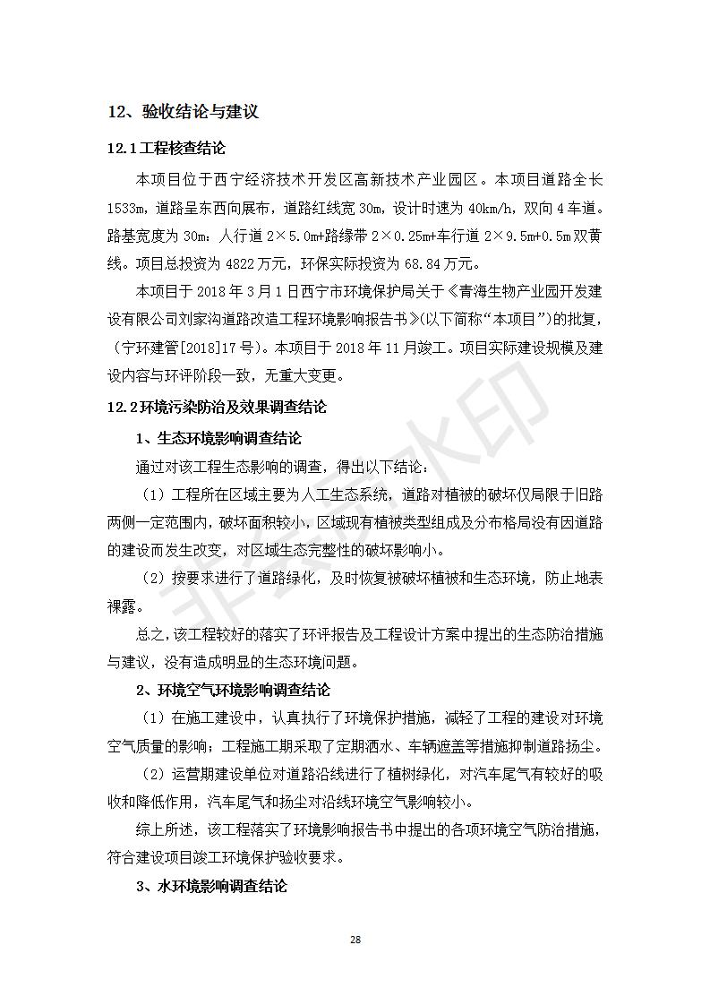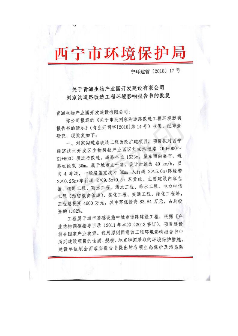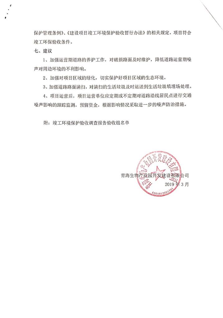 青海生物產(chǎn)業(yè)園開發(fā)建設(shè)有限公司劉家溝道路改造工程竣工環(huán)境保護驗收調(diào)查公示發(fā)布日期:(2019-3-14) 點擊次數(shù):2850 |