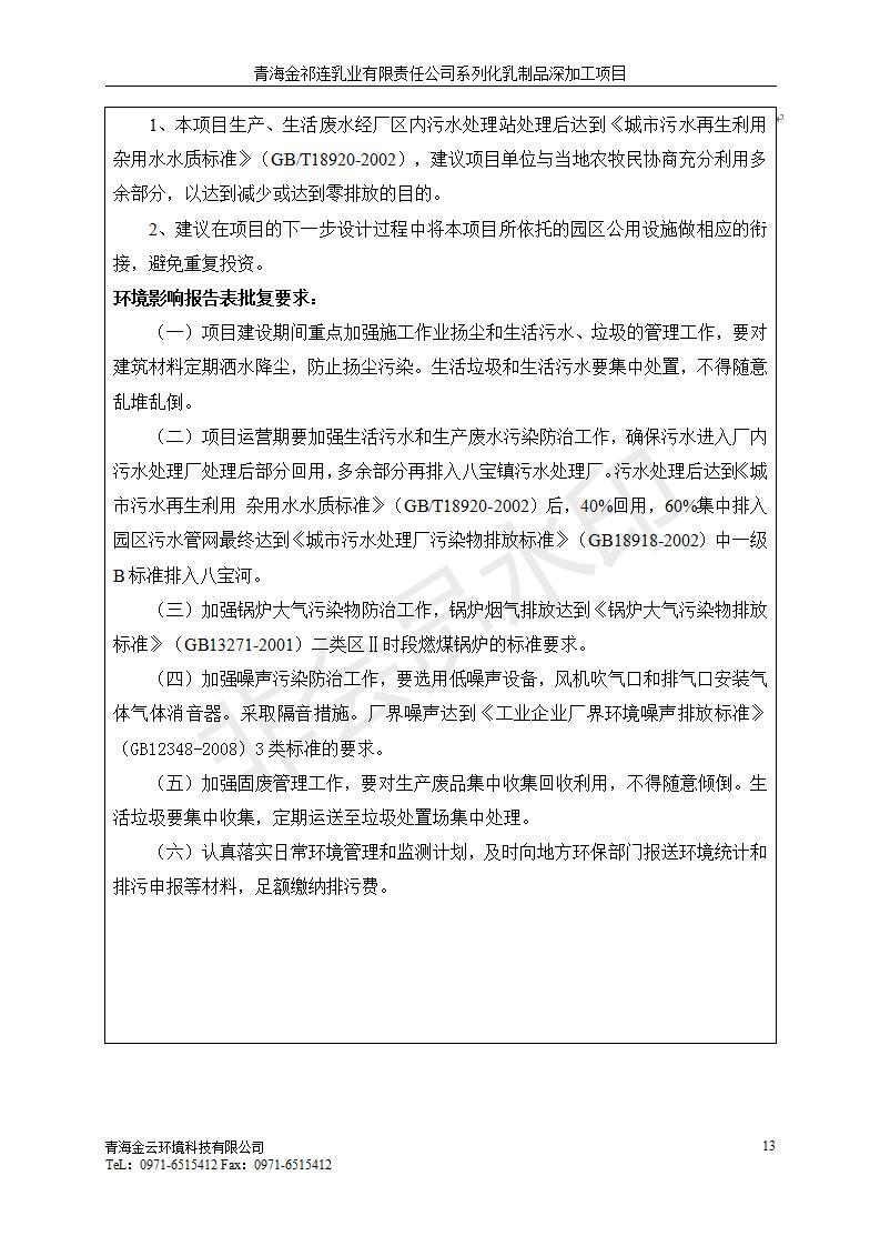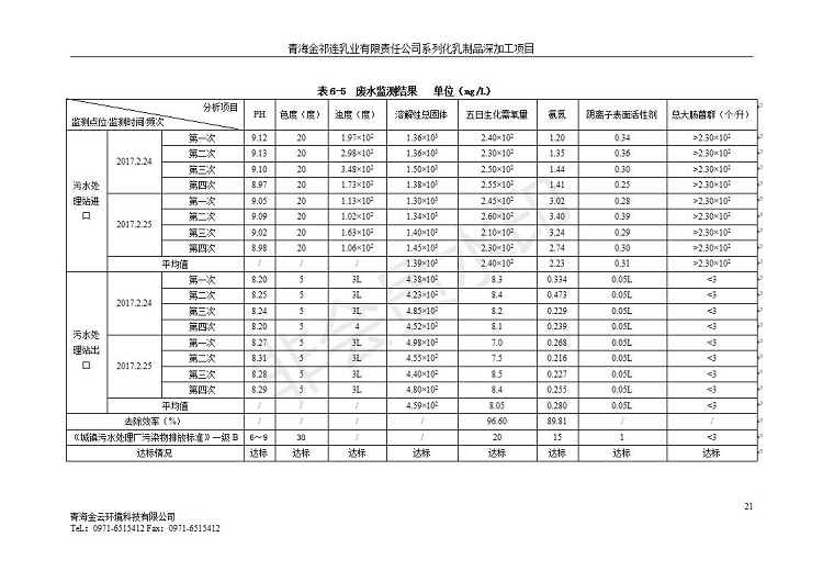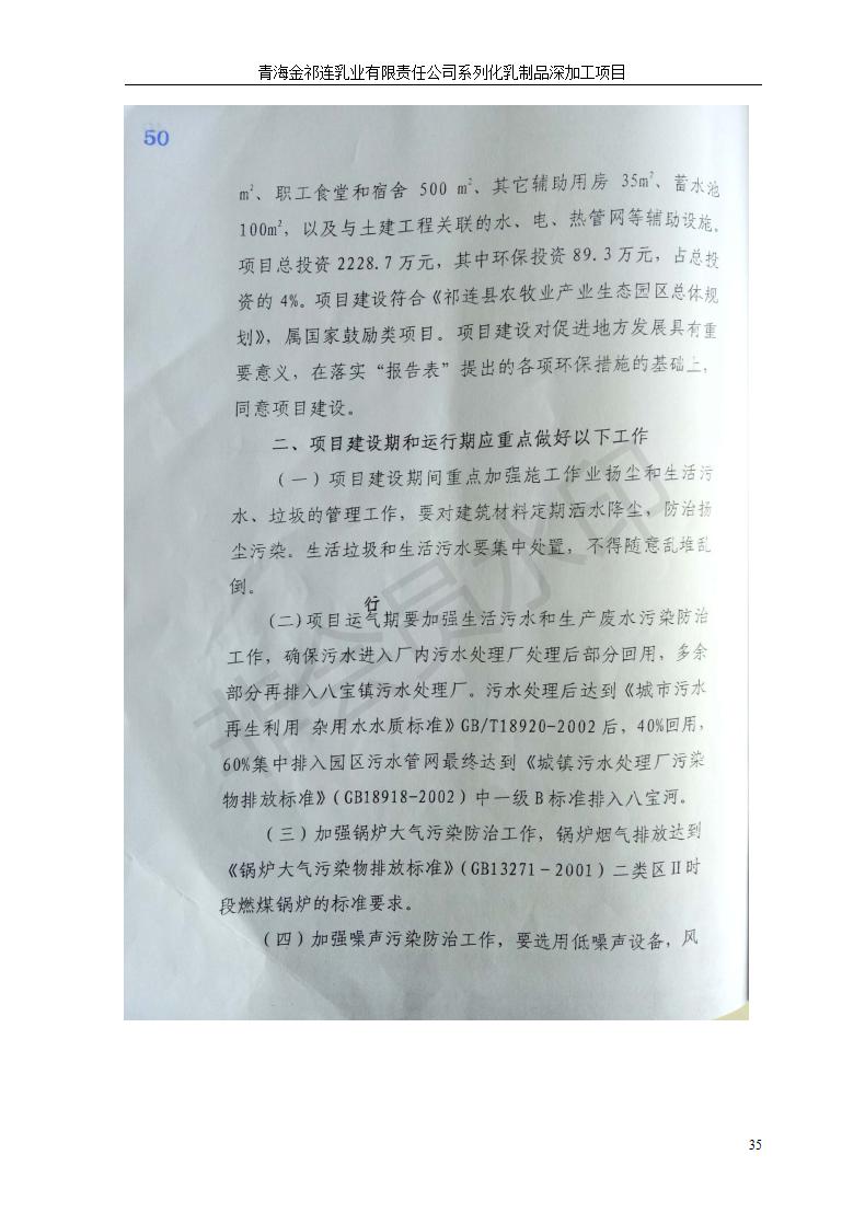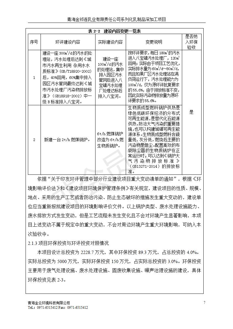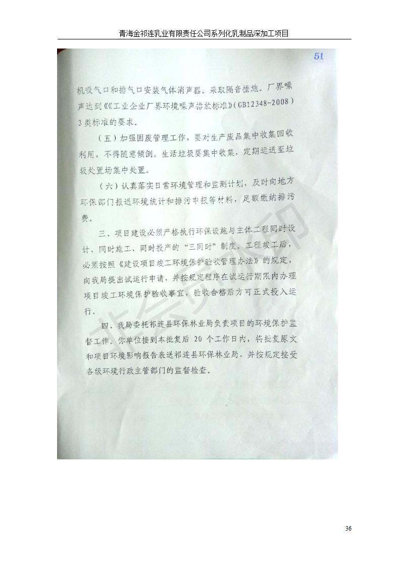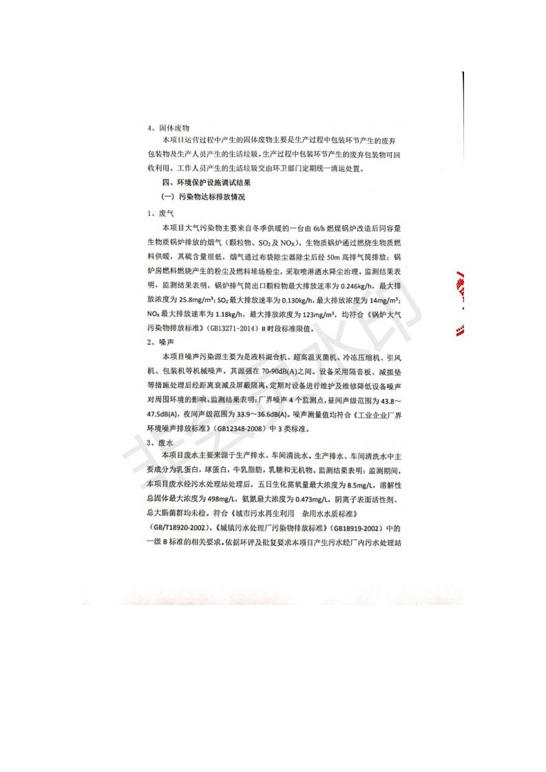 根據(jù)中華人民共和國國務(wù)院令第682號《國務(wù)院關(guān)于修改〈建設(shè)項目環(huán)境保護管理條例〉的決定》和《建設(shè)項目竣工環(huán)境保護驗收暫行辦法》(國務(wù)院令682號),青海金祁連乳業(yè)有限責(zé)任公司系列化乳制品深加工項目(包括竣工環(huán)境保護驗收監(jiān)測報告表和驗收意見)公示如下。 一、項目名稱:青海金祁連乳業(yè)有限責(zé)任公司系列化乳制品深加工項目 二、地點:海北藏族自治州祁連縣冰溝農(nóng)牧產(chǎn)業(yè)化生態(tài)園區(qū) 三、建設(shè)單位:青海金祁連乳業(yè)有限責(zé)任公司 四、建設(shè)內(nèi)容:本項目新征工業(yè)用地40畝,新建生產(chǎn)車間2200 m2、采用多聯(lián)跨鋼結(jié)構(gòu)廠房,跨度為24米,長度為80米,柱間距為6米,標(biāo)高為4.8米。廠房內(nèi)部根據(jù)產(chǎn)品生產(chǎn)工藝及工序要求分為不同的工作區(qū)域和車間辦公室。建設(shè)有保鮮冷庫800 m2、普通倉庫500m2、污水處理站房160 m2、鍋爐房和配電室159 m2、綜合辦公樓1200 m2、職工食堂和宿舍500 m2、其他輔助用房35 m2、蓄水池100 m2以及與土建工程相關(guān)聯(lián)的水、電、熱官網(wǎng)等輔助設(shè)施。 五、聯(lián)系人:張工 六、聯(lián)系電 話:0971-6515411 七、公示時間:二〇一九年七月十日至二〇一九年八月六日 公示期間,對上述公示內(nèi)容如有異議,請以書面形式反饋,個人須署真實姓名,單位須加蓋公章。
