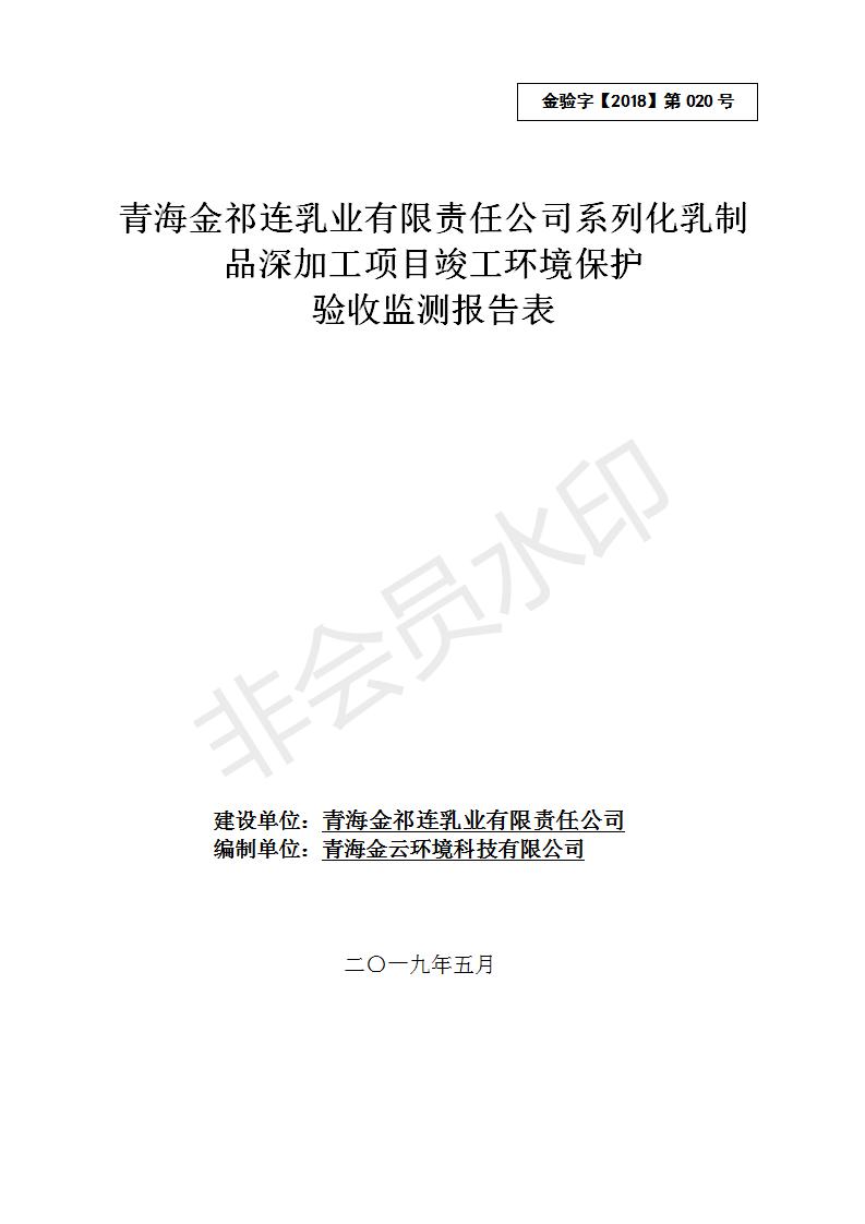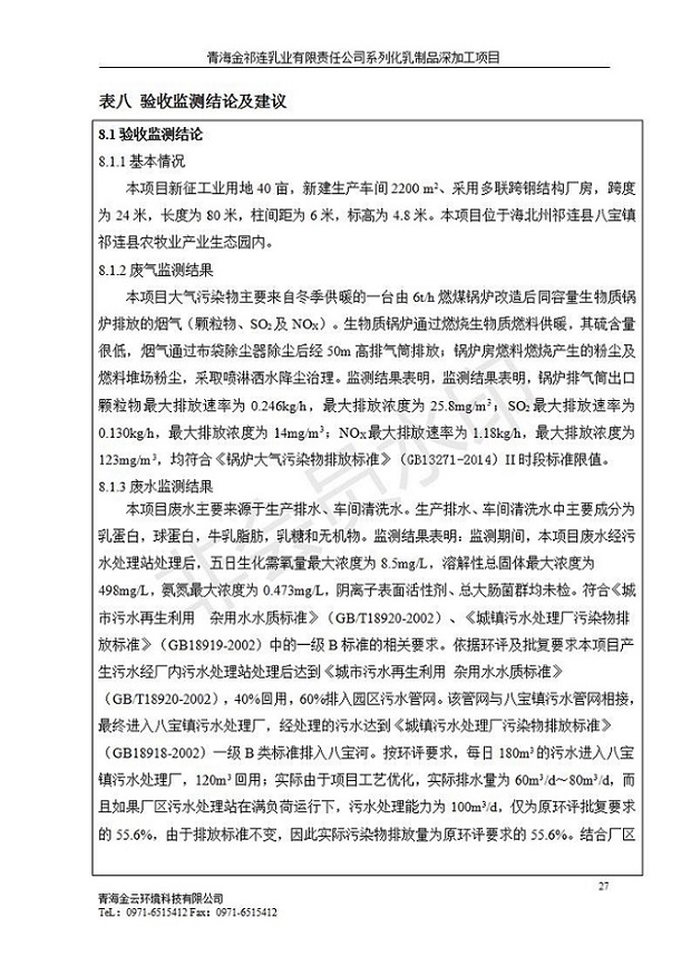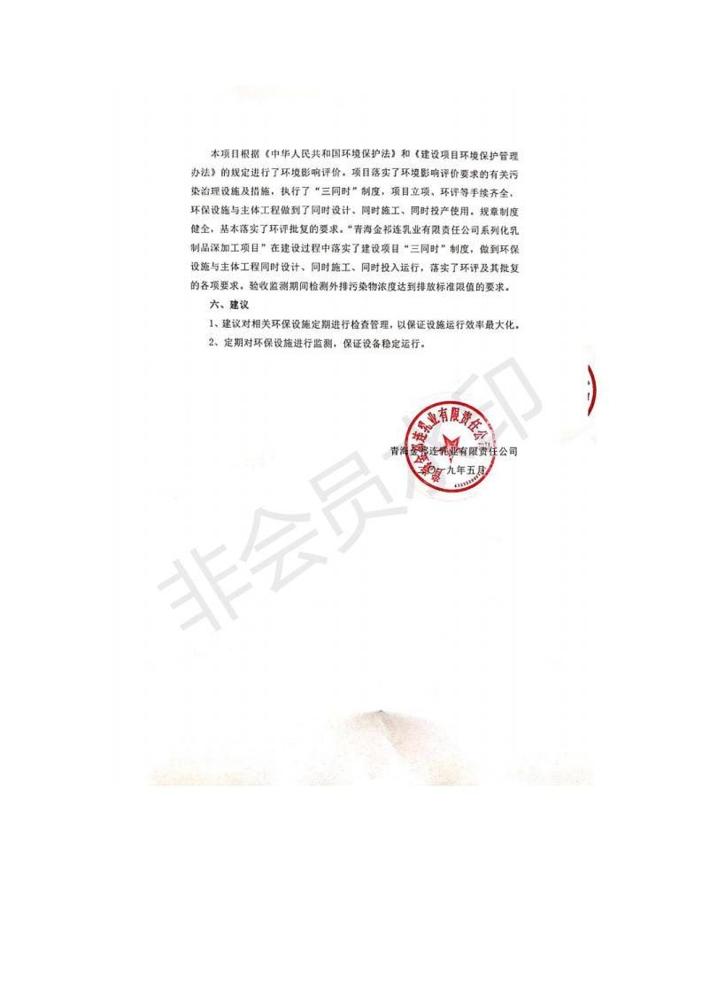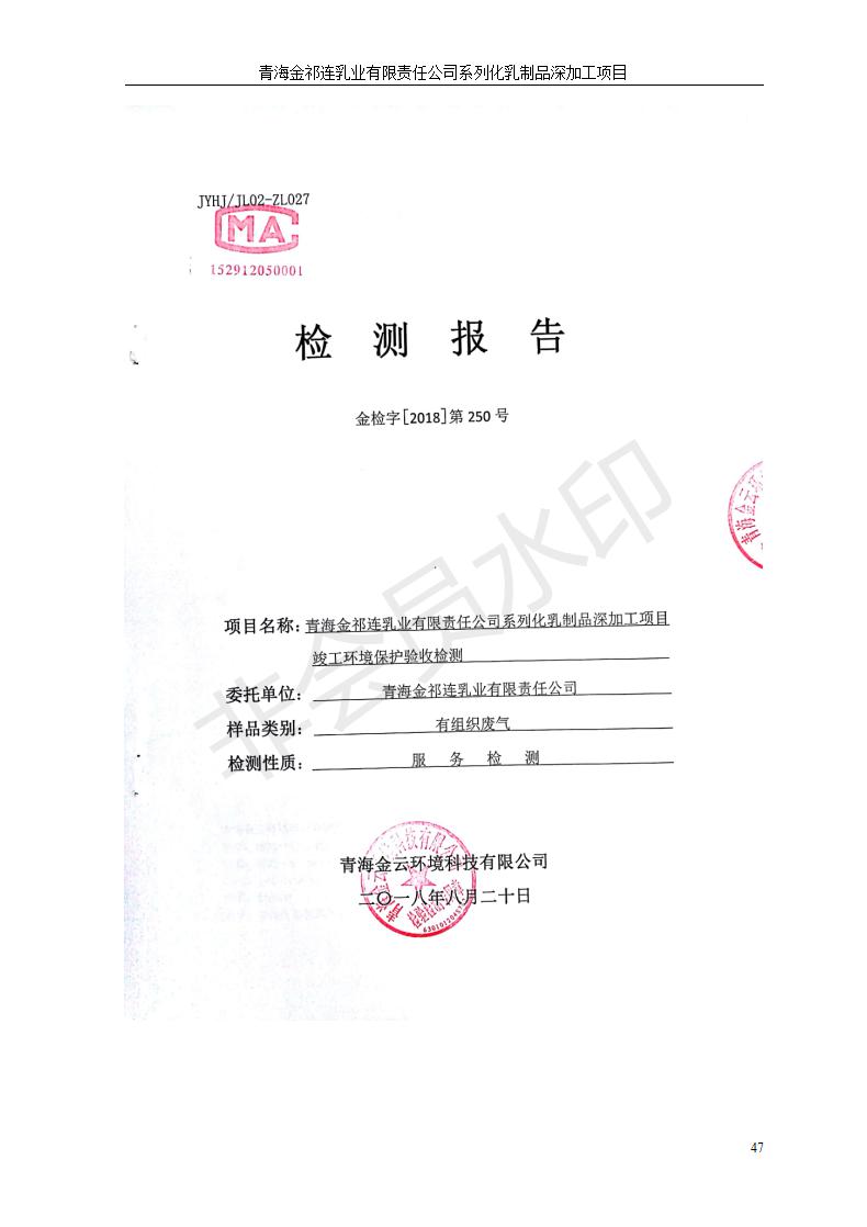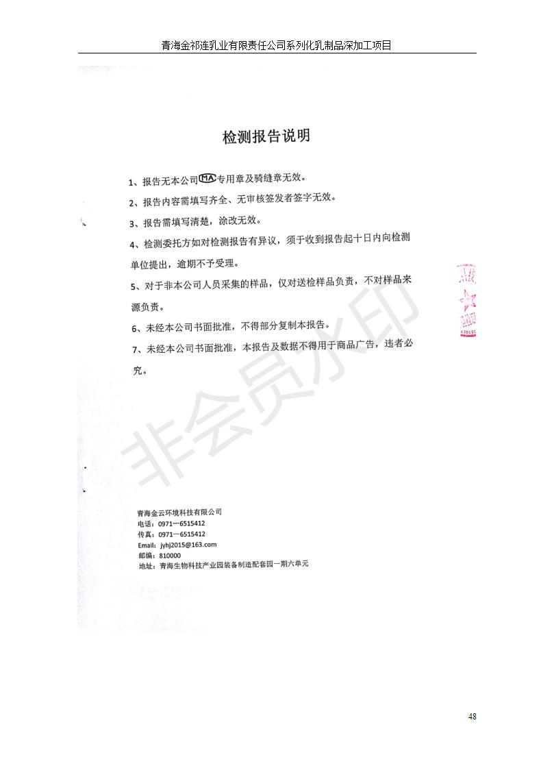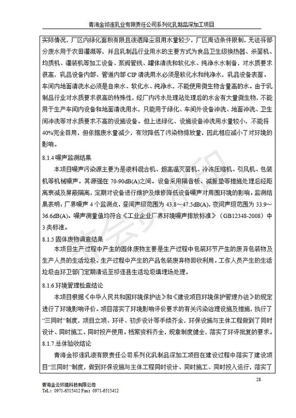 青海金祁連乳業(yè)有限責(zé)任公司系列化乳制品深加工項目竣工環(huán)境保護驗收監(jiān)測報告表公示發(fā)布日期:(2019-7-10) 點擊次數(shù):2174 |