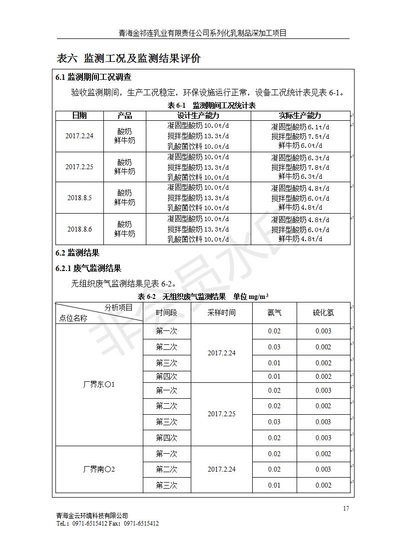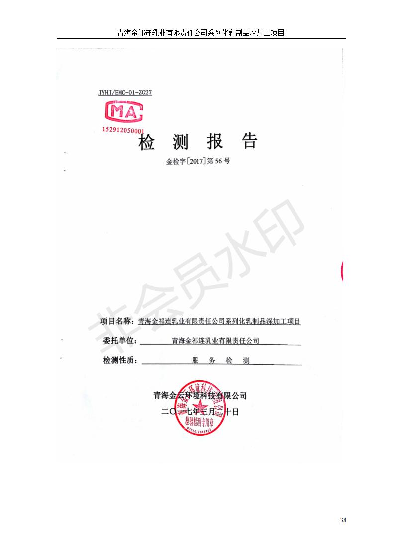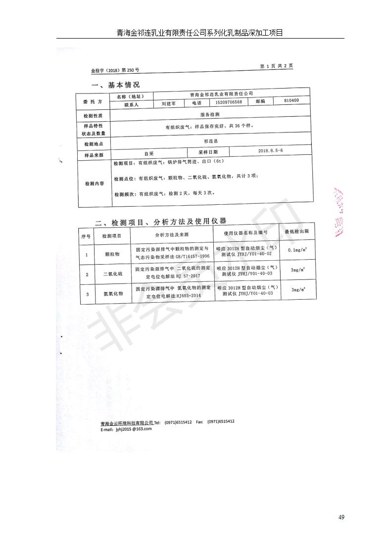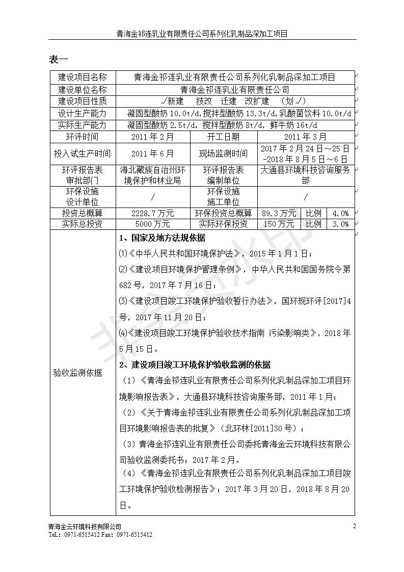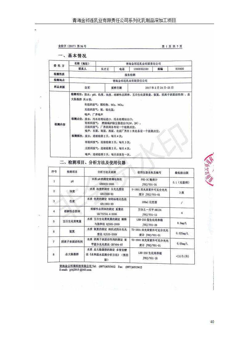 青海金祁連乳業(yè)有限責(zé)任公司系列化乳制品深加工項目竣工環(huán)境保護驗收監(jiān)測報告表公示發(fā)布日期:(2019-7-10) 點擊次數(shù):2174 |