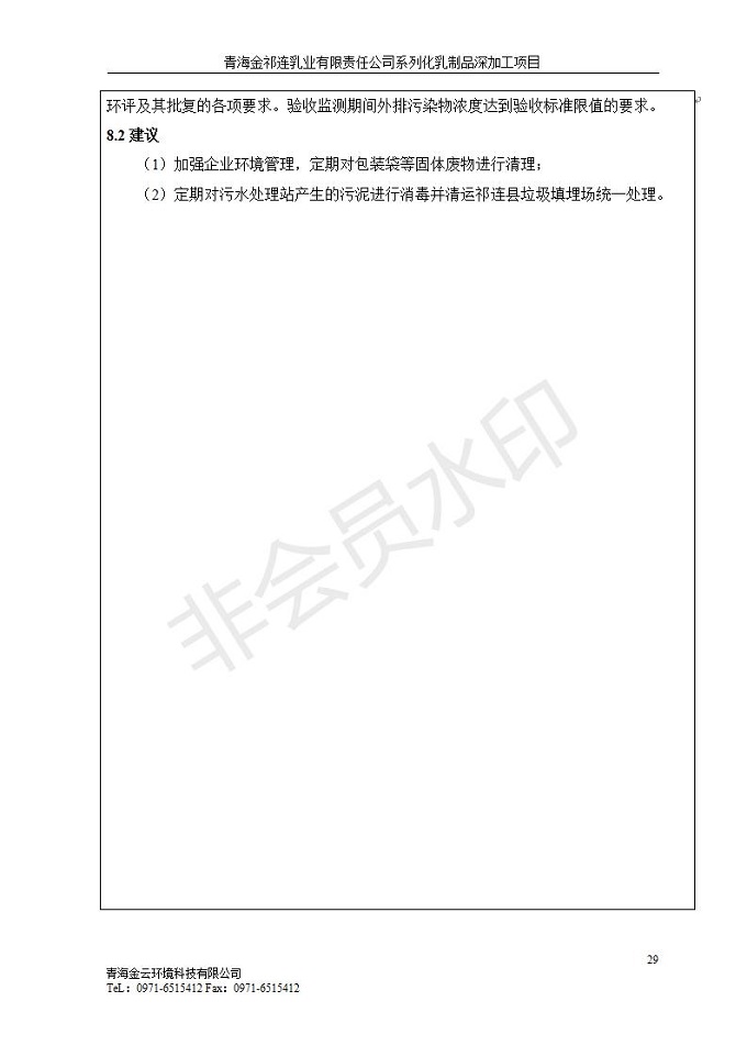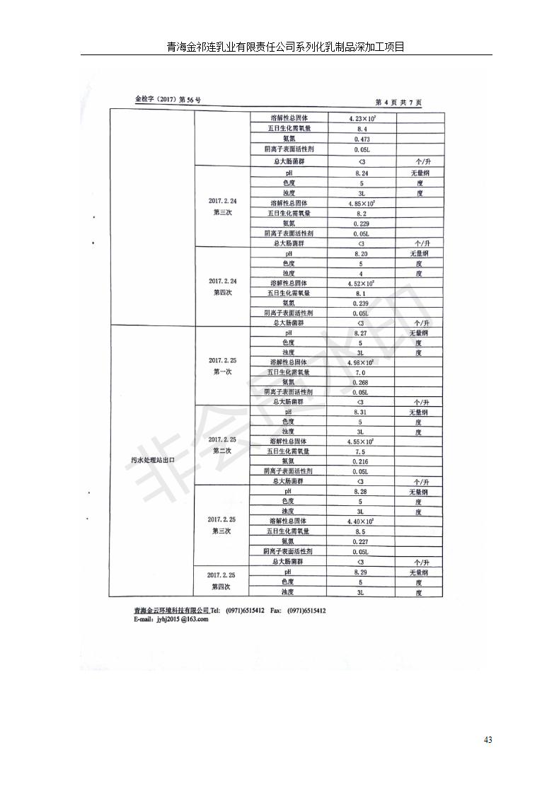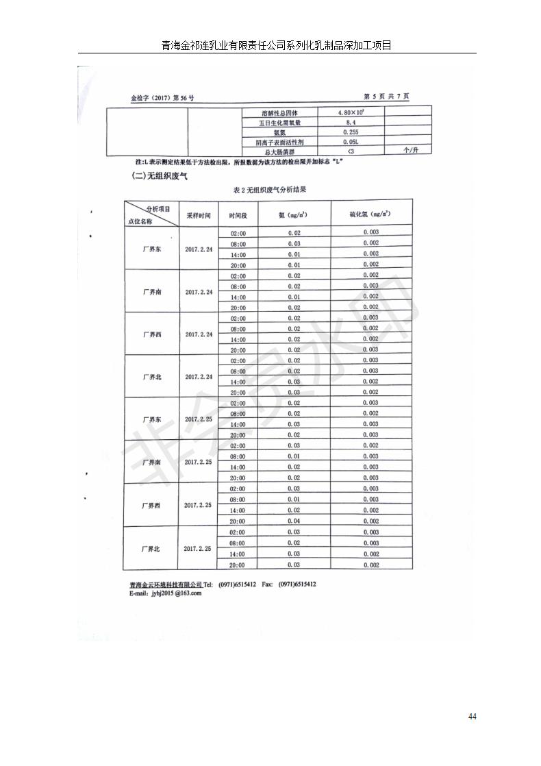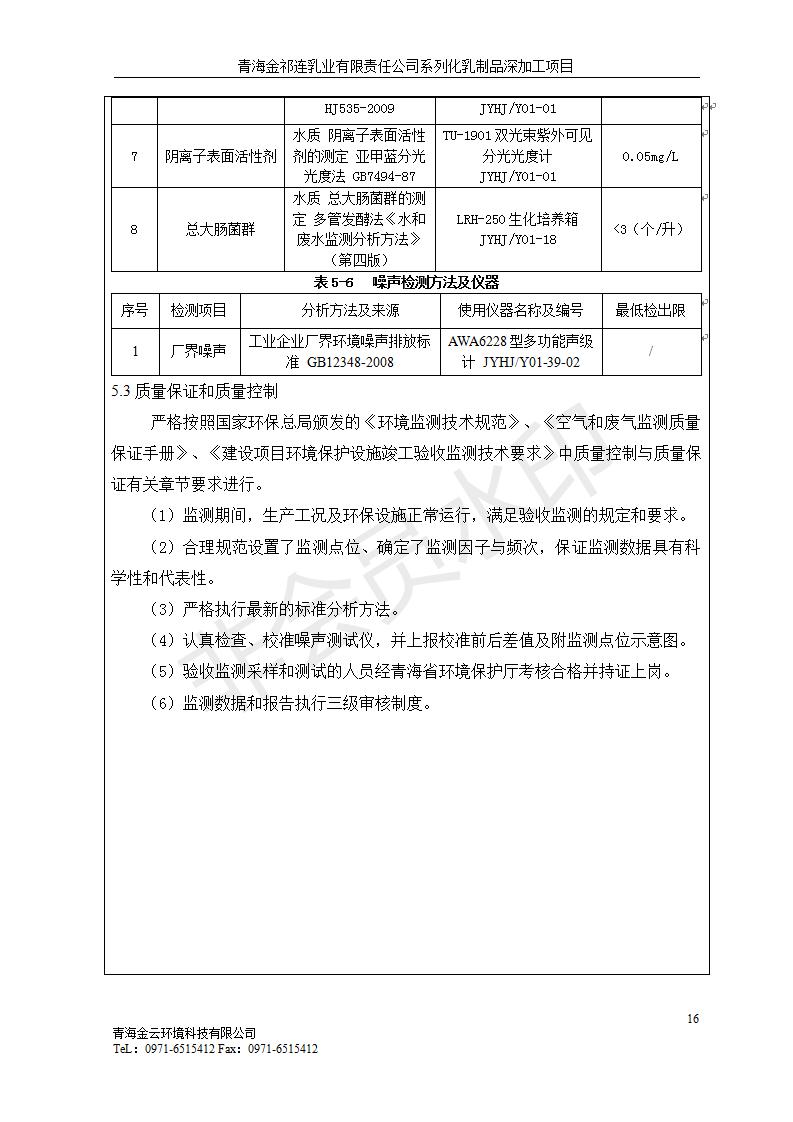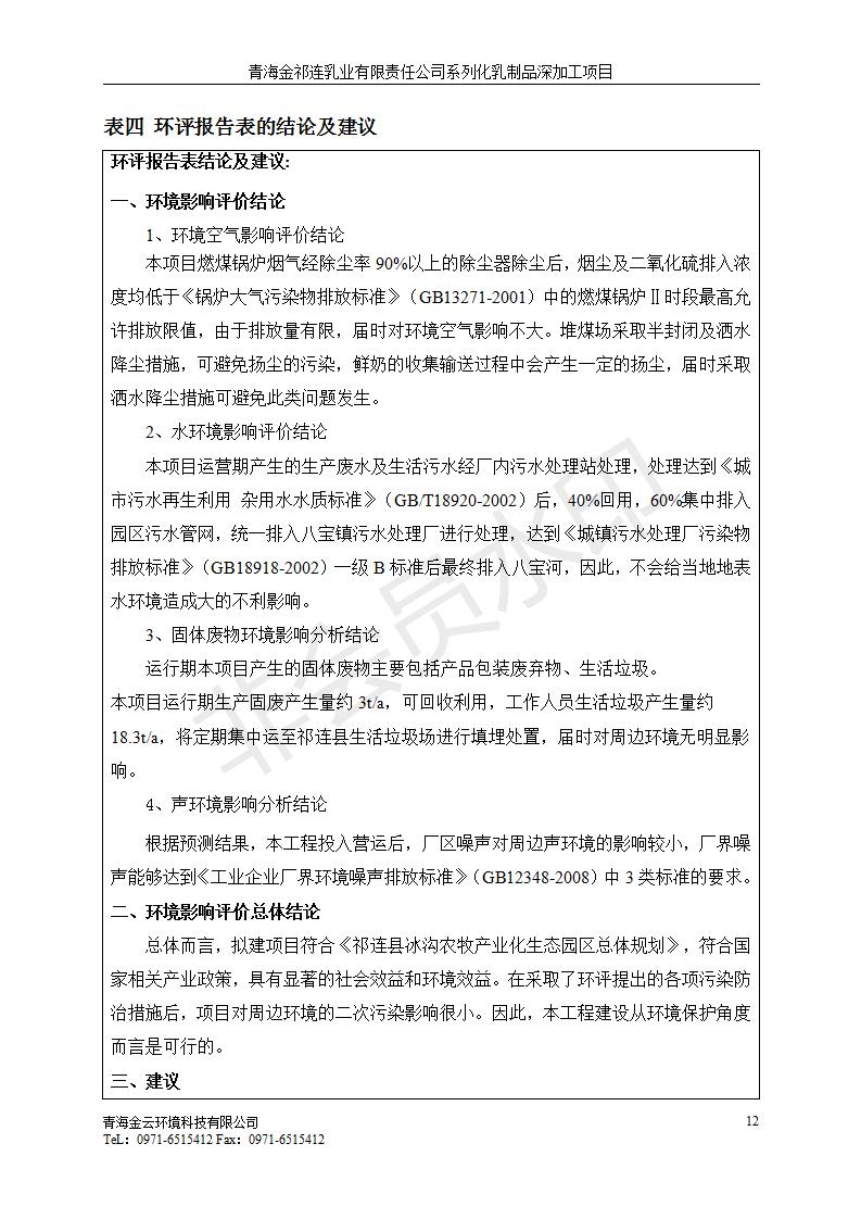 青海金祁連乳業(yè)有限責(zé)任公司系列化乳制品深加工項目竣工環(huán)境保護驗收監(jiān)測報告表公示發(fā)布日期:(2019-7-10) 點擊次數(shù):2174 |