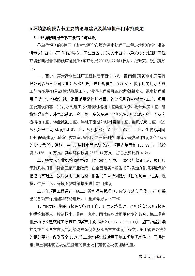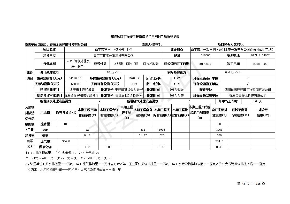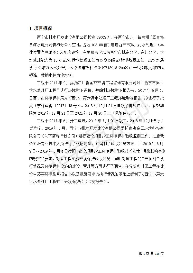 西寧市第六污水處理廠工程竣工環(huán)境保護(hù)驗(yàn)收公示發(fā)布日期:(2019-7-11) 點(diǎn)擊次數(shù):2652 |